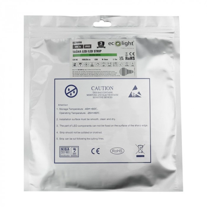 Der COB-LED-Streifen von Ecolight ist eine Garantie für Langlebigkeit und Zuverlässigkeit. Er nutzt die fortschrittliche COB-LED-Technologie, die bis zu 480 LEDs pro Meter ermöglicht, und lässt sich dank seiner Breite von 8 mm selbst an den schwierigsten Orten leicht installieren. Außerdem macht die integrierte LED-Quelle einen häufigen Austausch überflüssig. Diese Leuchte besticht nicht nur durch ihre hohe Verarbeitungsqualität, sondern eignet sich auch für eine Vielzahl von Anwendungen im Innen- und Außenbereich, von der Küche bis zur Treppe.
