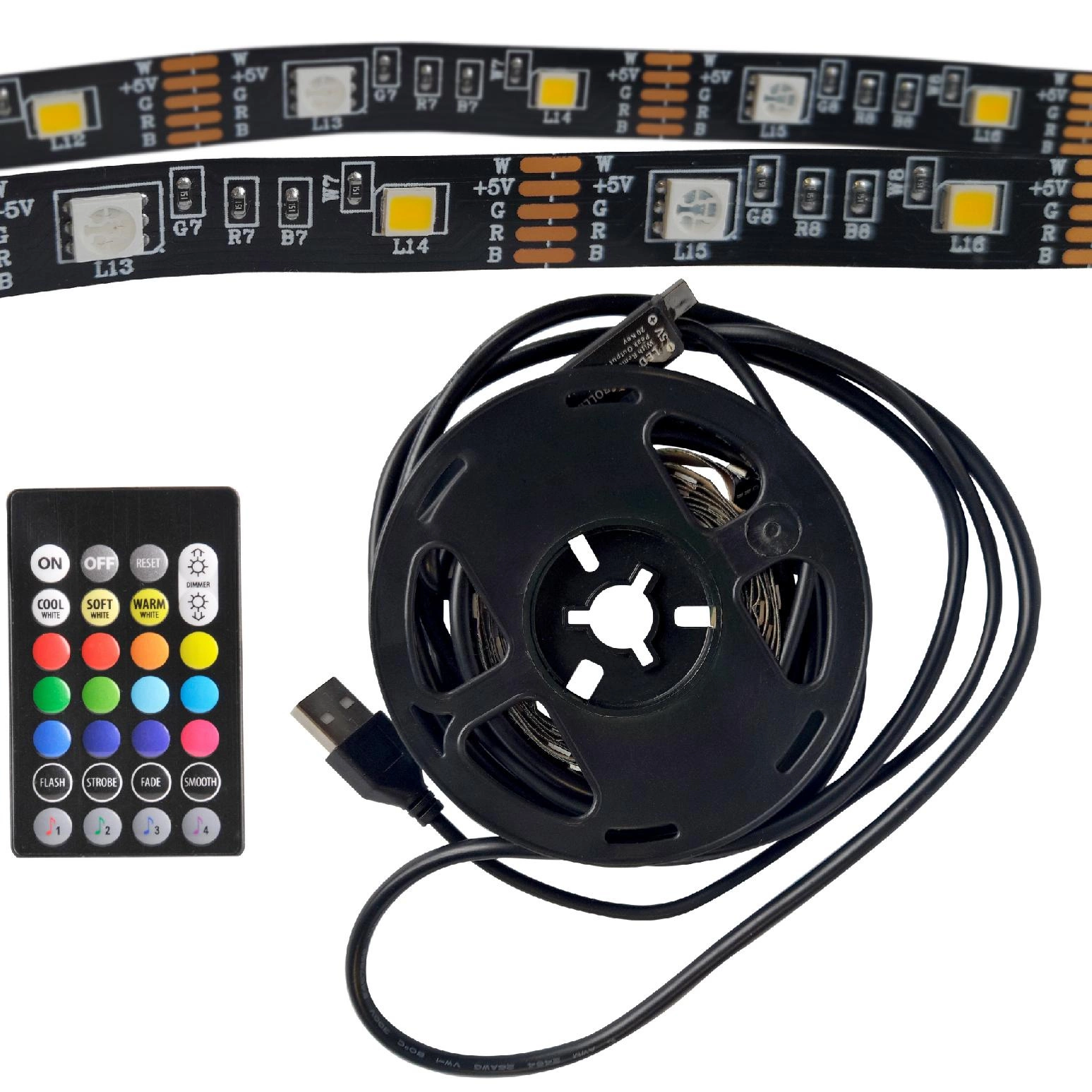 Möchten Sie Ihrem Interieur eine einzigartige Atmosphäre und einen modernen Stil verleihen? Lernen Sie die RGBw LED-Leiste von Sanico Goldlux kennen! Es ist die perfekte Lösung für alle, die eine Beleuchtung wünschen, die nicht nur funktional, sondern auch ästhetisch ist. Unser LED-Streifen aus schwarzem Band beleuchtet den Raum mit einem weiten Winkel von 120° und bietet dank seiner 44 RGB- und 44 weißen LEDs ein beeindruckendes visuelles Erlebnis. Die Dimmbarkeit ermöglicht die volle Kontrolle über die Lichtintensität, und die Reichweite der Fernbedienung von bis zu 8 Metern bietet den Komfort, sie zu benutzen, ohne vom Sofa aufzustehen.