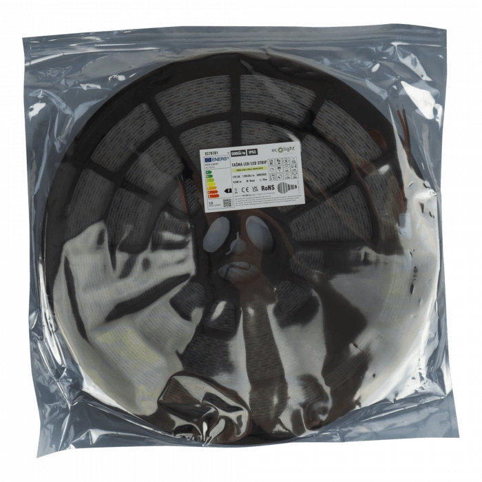 Entdecken Sie den hochwertigen Ecolight-LED-Streifen, der hervorragende Leistung mit einer eleganten warmen Lichtfarbe von 3000K kombiniert. Der mit 12 V Gleichstrom betriebene LED-Streifen liefert 600 Lumen pro Meter bei 9,6 W/m. Dies bedeutet nicht nur Energieeinsparungen, sondern auch eine außergewöhnlich helle und gleichmäßige Ausleuchtung dank der Verwendung modernster SMD 2835 LEDs. Er eignet sich sowohl für den Innen- als auch für den Außenbereich und ist somit eine vielseitige Lösung für Ihren Garten, Ihre Küche, Ihr Badezimmer oder Ihr Treppenhaus.