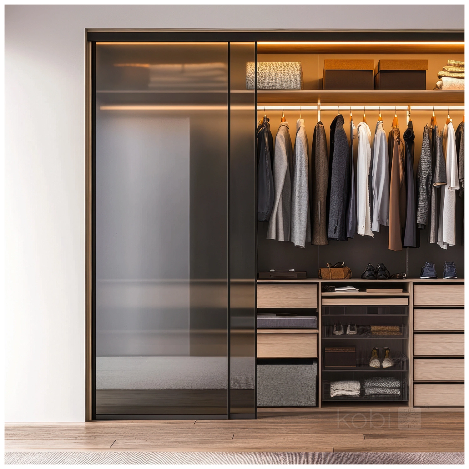 - Beleuchtung in Kleiderschränken - erleichtert das Durchsuchen des Schrankinhalts durch eine angemessene Beleuchtung.