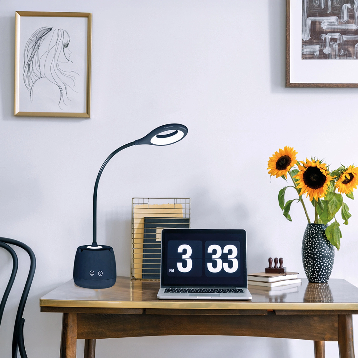 Tauchen Sie ein in das Licht moderner Eleganz mit der LED-Tischleuchte Lusia. Stilvoll und funktional, ist sie die perfekte Lösung für jedes Büro, Arbeitszimmer oder Home Office. Ausgestattet mit einem 5W-Akku, bietet sie einen Lichtstrom von 180 Lumen, der eine perfekte und gleichmäßige Lichtverteilung garantiert. Eine praktische und ästhetische Lampe, deren variable Farbtemperatur von 3000K bis 6000K es ermöglicht, die Beleuchtung an Ihre Bedürfnisse anzupassen, egal zu welcher Tageszeit.