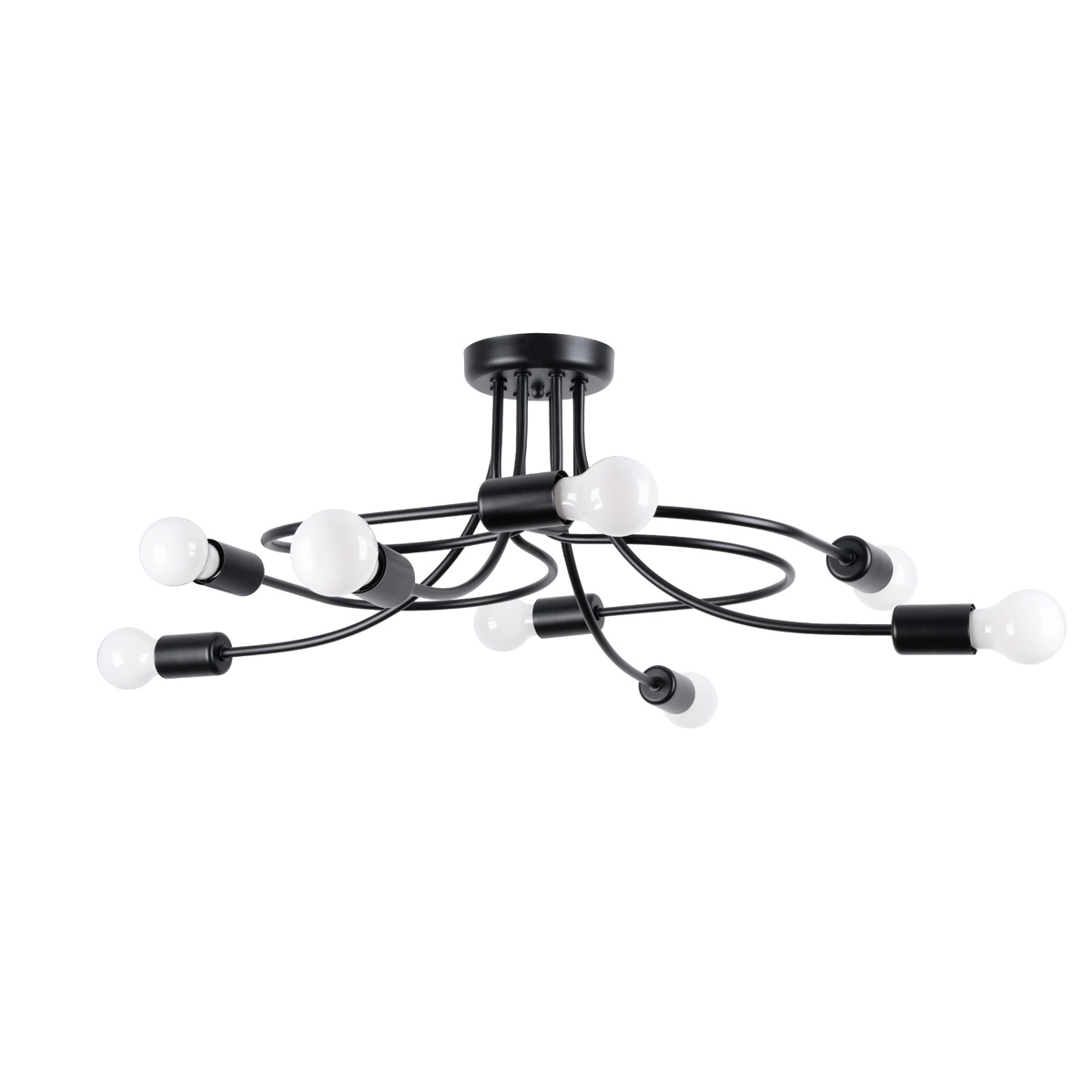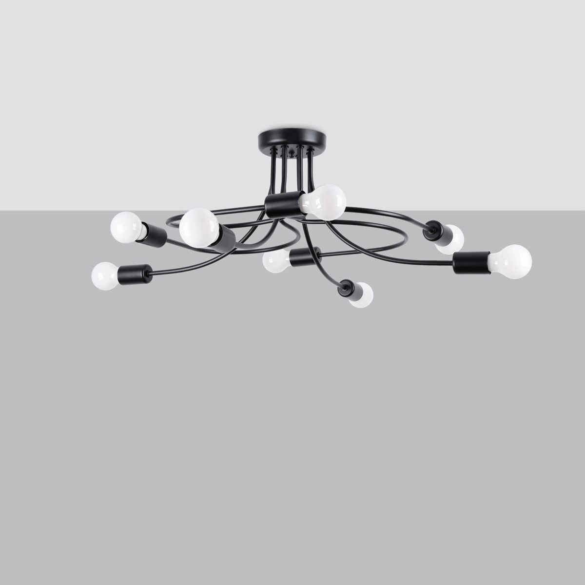 Entdecken Sie ein einzigartiges Design mit der industriellen Deckenleuchte von Levar Sollux. Es handelt sich um eine stilvolle Deckenanbauleuchte mit acht Lichtpunkten für E27-Glühbirnen. Das unregelmäßig geformte Design in Schwarz fügt sich perfekt in moderne Interieurs ein und verleiht ihnen Charakter und Eleganz.