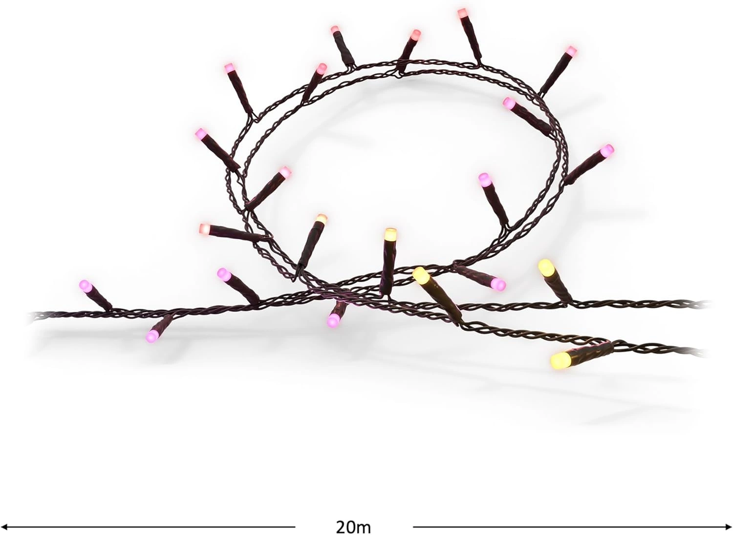 Intelligente Lichterkette HUE Festavia von dem renommierten und angesehenen Unternehmen Philips mit 250 intelligenten Miniatur-LEDs an einem 20 Meter langen Kabel ist eine auffällige Dekoration für Innenräume und Außenbereiche. Die Leuchten füllen den Raum mit einem breiten Spektrum an farbigem und weißem Licht und schaffen so ein angenehmes und stimmungsvolles Ambiente, das zu jedem Anlass passt. Die Girlande bietet einen nahtlosen Farbübergang entlang des gesamten Drahtes, so dass Sie einen Glow- oder Prisma-Effekt wählen oder eine Farbe für einen traditionelleren Effekt einstellen können. Es ist einfach zu installieren und robust, so dass es unter verschiedenen Wetterbedingungen lange genutzt werden kann. Ideal für die Schaffung einer einzigartigen Atmosphäre bei Zusammenkünften im Freien mit Familie und Freunden.