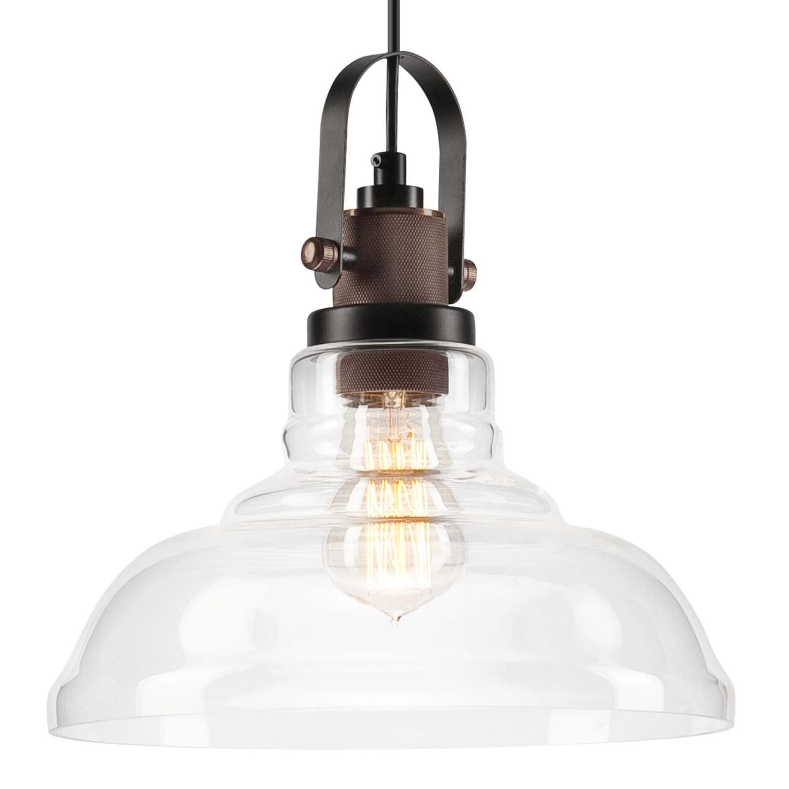 Der Lampenschirm ist aus transparentem Glas gefertigt. Auf der Oberfläche können sich kleine Luftblasen befinden.