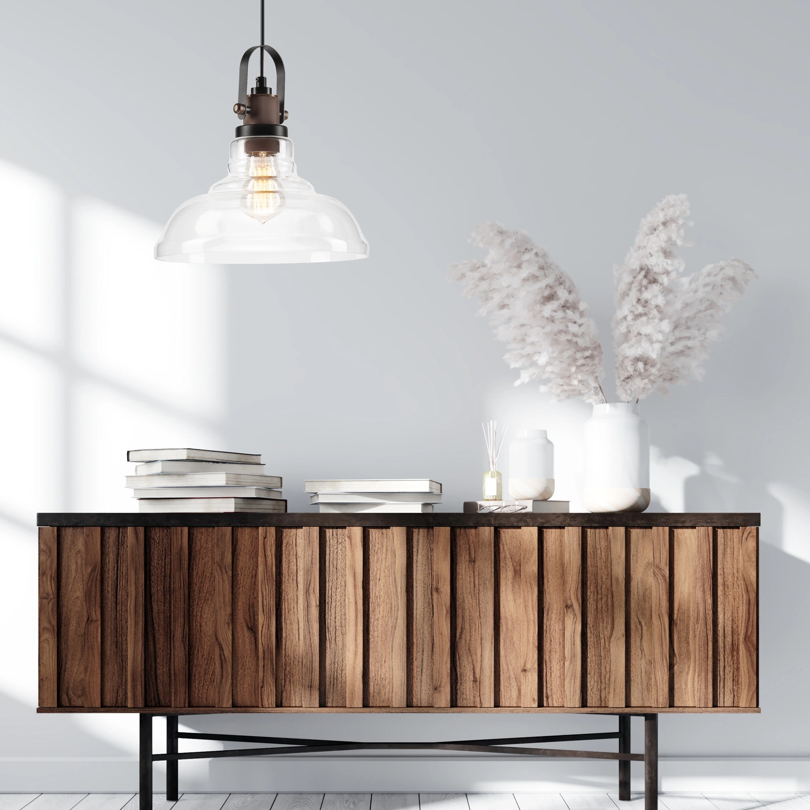Die minimalistische Form der Leuchte verleiht dem Interieur einen einzigartigen Look. Hervorragend geeignet für transparente Glühbirnen vom Typ Edison.
