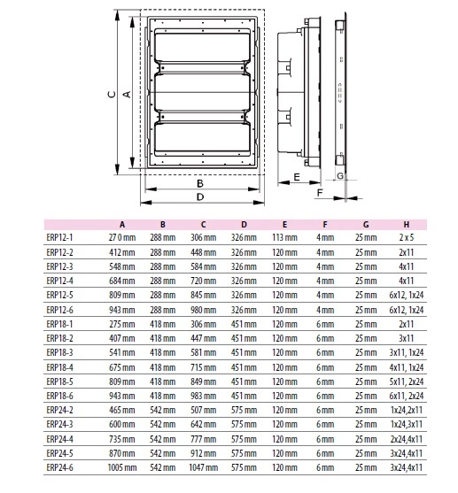 Leistungsstarker Unterputz-Verteilerschrank mit 72 Modulen (6 Reihen à 12) für eine sichere und geordnete Elektroinstallation. Robuste Konstruktion mit Metalltür und weißem Kunststoffgehäuse erfüllt die Schutzart IP40 und Schutzklasse II.
