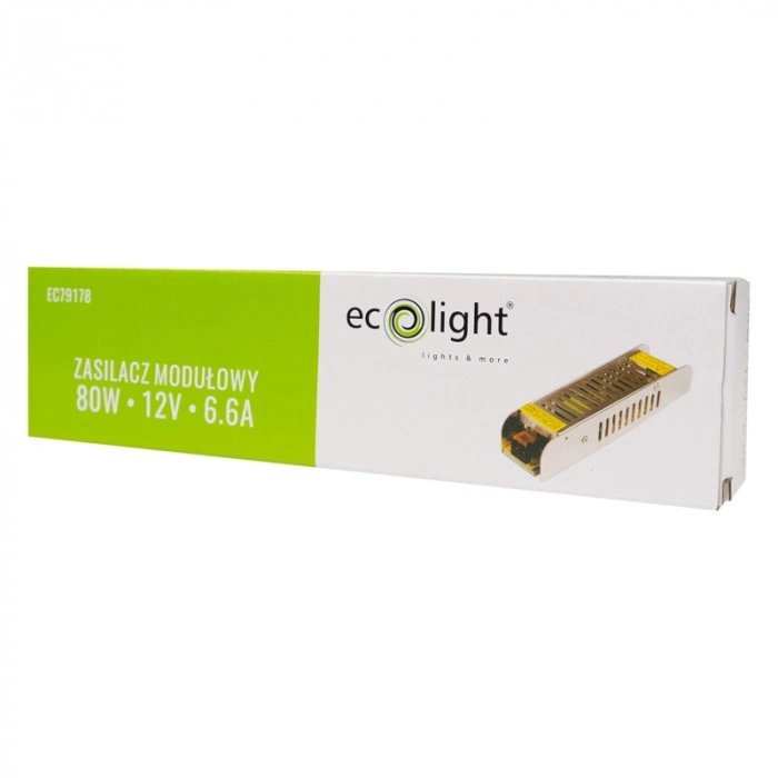 Das einzigartige SLIM LED Strip Modular Power Supply von Ecolight ist die ideale Lösung für alle, die eine zuverlässige und effiziente Stromquelle für ihre LED-Installationen suchen. Mit einer Nennleistung von 80W garantiert dieses kompakte Netzteil eine stabile Beleuchtungsleistung und passt sich dank eines Eingangsspannungsbereichs von 176-264V AC an die meisten Standard-Elektroinstallationen an. Es ist mit einer Ausgangsspannung von 12 V DC und einer Stromstärke von 6,6 A ausgestattet und gewährleistet eine sichere und effiziente Stromversorgung Ihrer LED-Beleuchtung.