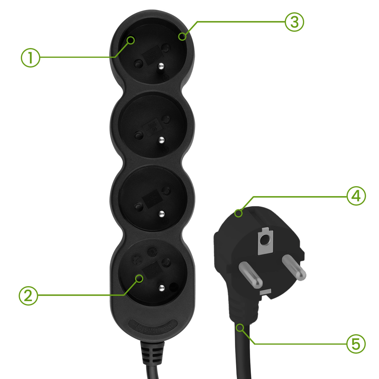 Spezifikationen der Komponenten der Steckdosenleiste: