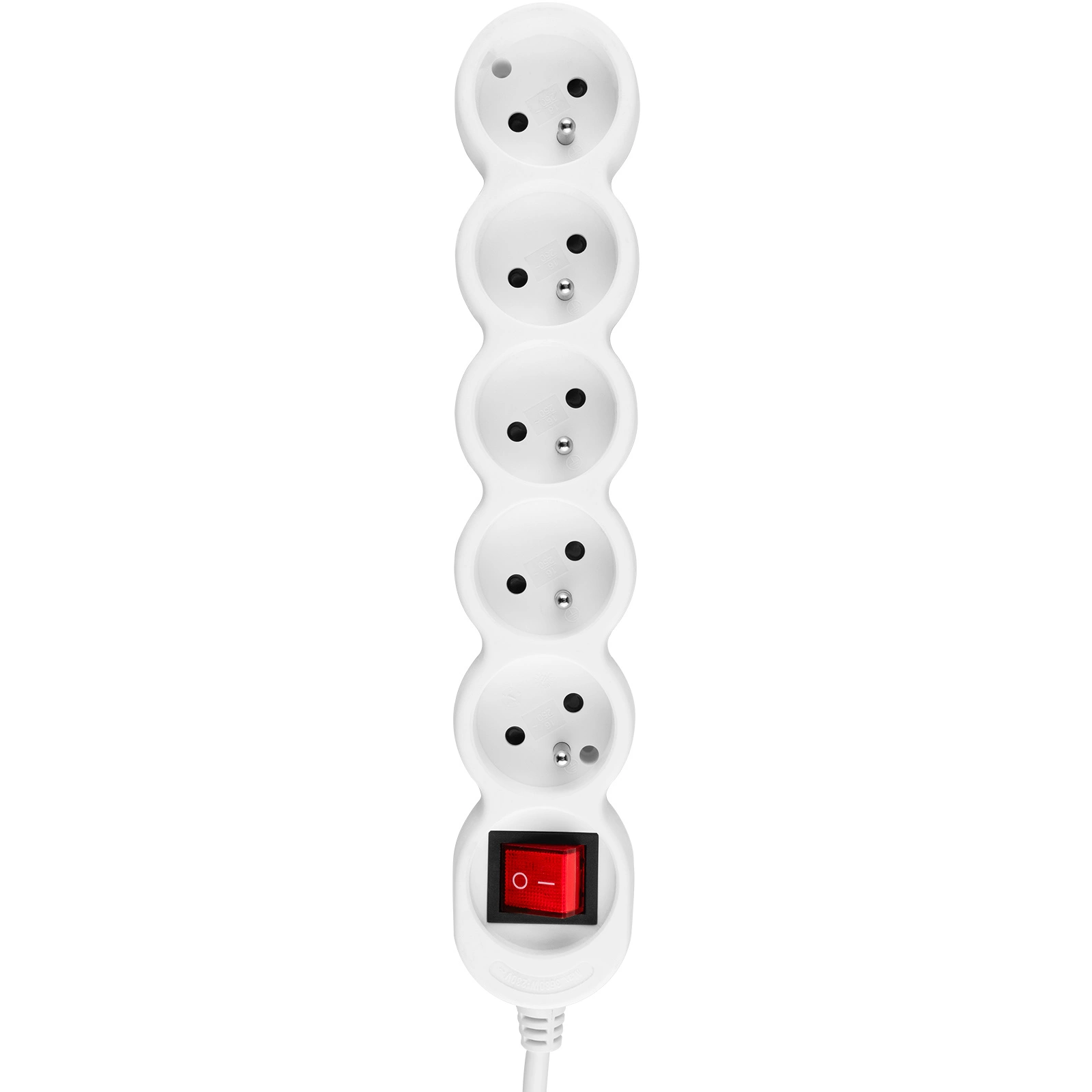 Netzverlängerungskabel Geerdete Steckdosenleiste 5 Steckdosen 3m ON/OFF Schalter Weißes Kabel Lendo Lumiled