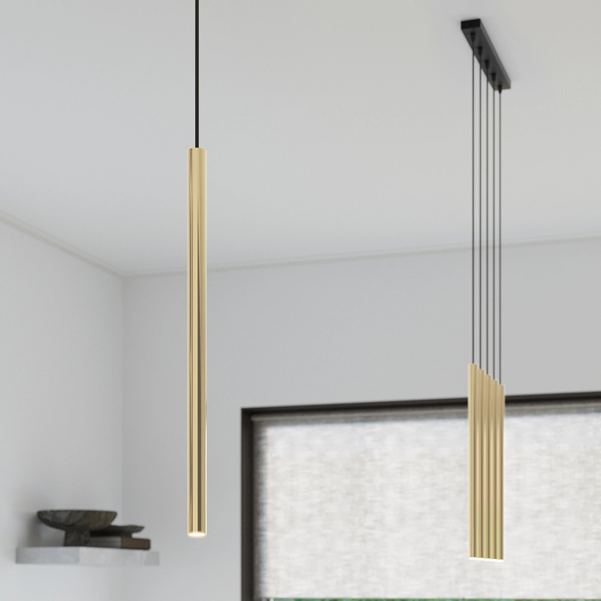 Setzen Sie einen modernen Akzent in Ihrem Interieur mit der Tuba Pendel-Deckenleuchte Tubular Kronleuchter in Goldglanz. Diese elegante Leuchte im Pastelo-Stil bietet nicht nur eine hervorragende Beleuchtung, sondern zieht auch mit ihrem einzigartigen Design die Blicke auf sich. Sie besteht aus drei Lichtpunkten, die mit Glühbirnen des Typs G9 bestückt sind und ein warmes und gemütliches Licht in Ihrer Wohnung verbreiten.