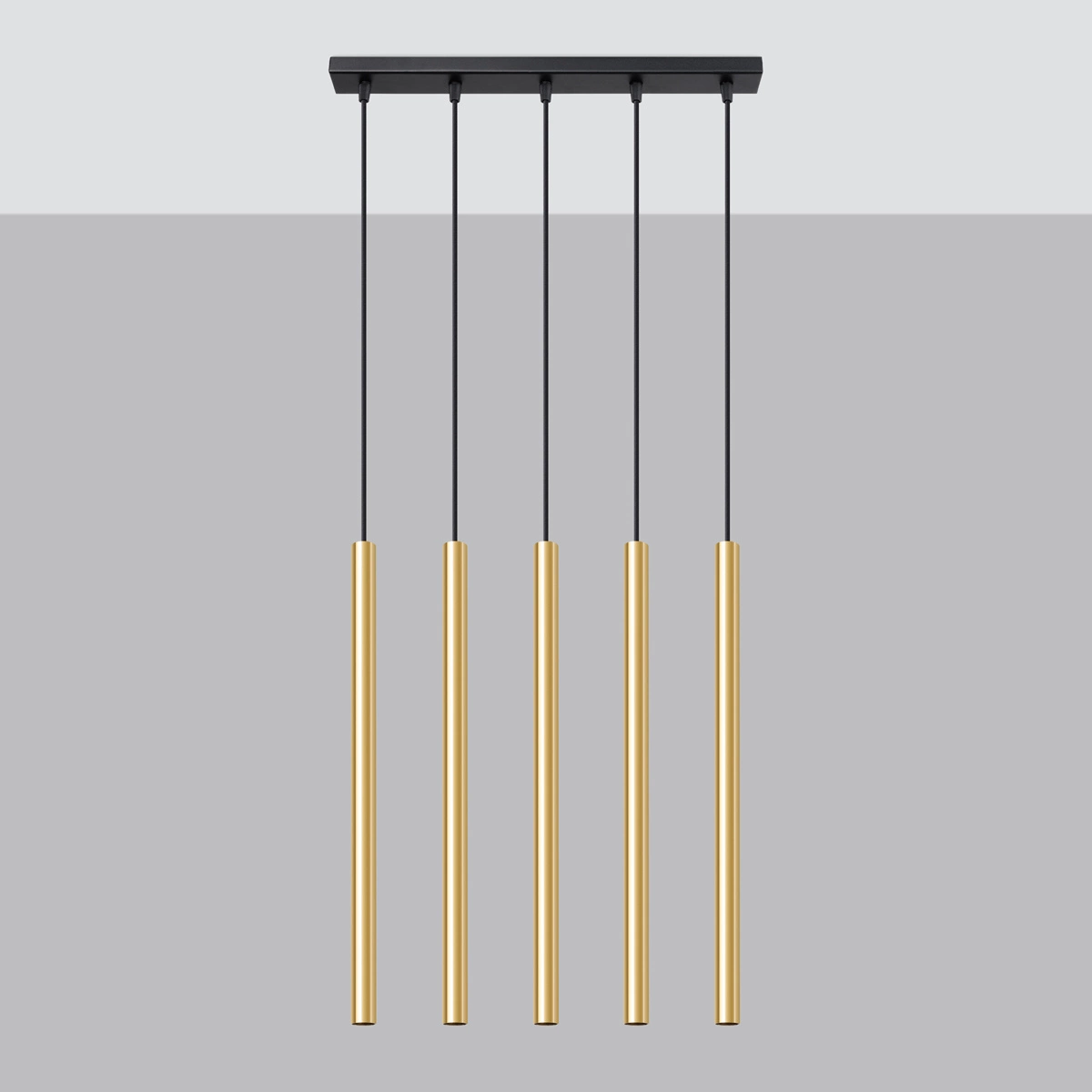 Entdecken Sie die moderne Schönheit der Pendelleuchte Pastelo, deren Design sich durch Eleganz und Funktionalität auszeichnet. Dieser einzigartige Kronleuchter zeichnet sich durch fünf röhrenförmige Schirme aus langlebigem Material aus, die einen außergewöhnlichen Lichteffekt bieten. Die goldglänzende Oberfläche verleiht dem Interieur einen luxuriösen Touch und macht ihn zur perfekten Ergänzung sowohl für moderne als auch für klassische Umgebungen.