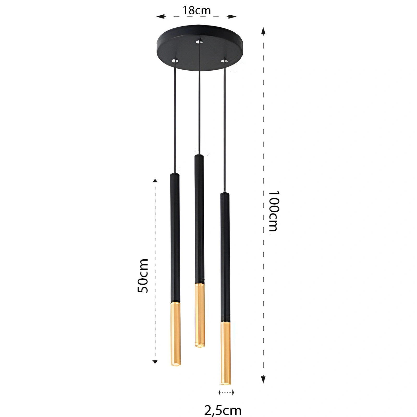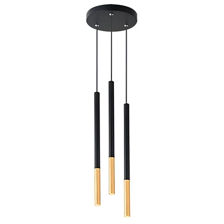 Hängeleuchte aus der Serie Piero ist eine moderne Leuchte auf einem runden Sockel in elegantem Schwarz mit goldenen Spitzen. Er eignet sich sowohl für moderne als auch für klassische Einrichtungen und verleiht jedem Interieur eine einzigartige Note. Die Hängeleuchte ist perfekt für das Wohnzimmer, Schlafzimmer, über dem Esstisch und auch in gewerblichen Räumen. Die Lampe ist mit drei Leuchtmitteln ausgestattet g9-Sockel mit einer maximalen Leistung von 35W. Die Art des ausgestrahlten Lichts hängt ab von die Art des ausgestrahlten Lichts hängt von der vom Benutzer gewählten Glühbirne ab, so dass die Beleuchtung an die individuellen Bedürfnisse angepasst werden kann - von warm über neutral bis kalt, je nach der Atmosphäre, die Sie schaffen wollen.