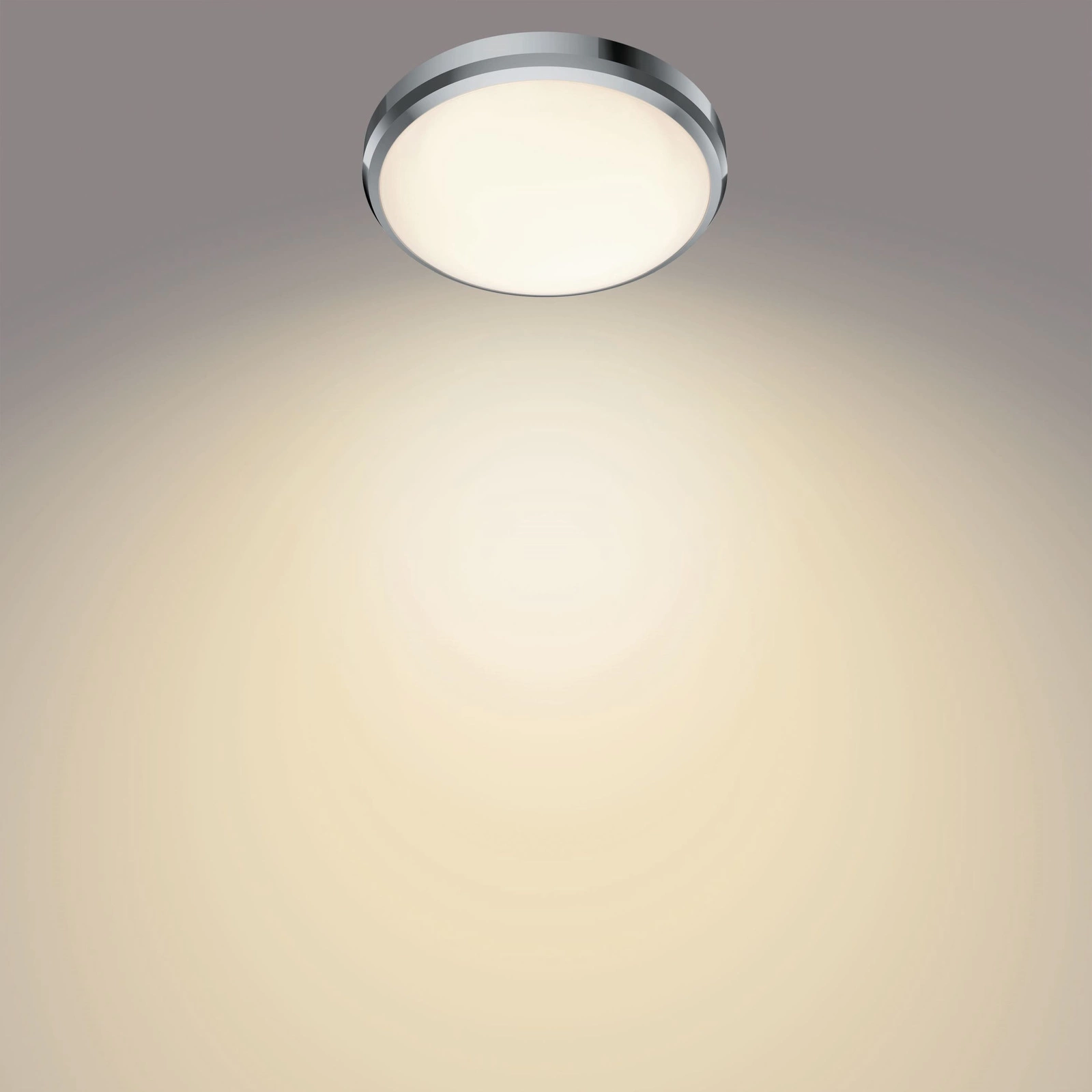 Die Doris LED Bathroom Plafond Ceiling Lamp von Philips ist eine moderne Beleuchtungslösung, die sich perfekt für jedes Badezimmer eignet. Ausgestattet mit einer energieeffizienten 17-W-LED-Glühbirne erzeugt die Lampe einen Lichtstrom von 1.500 Lumen und sorgt so für ausreichende Helligkeit im Raum. Die Farbtemperatur von 2700K sorgt für ein weiches, warmes Licht, das eine gemütliche Atmosphäre schafft. Mit der Schutzart IP44 ist der Plafond feuchtigkeits- und wasserbeständig und damit ideal für den Einsatz im Badezimmer geeignet. Die Leuchte zeichnet sich durch ihr modernes Design und die elegante Chromoberfläche aus, die sich harmonisch in eine Vielzahl von Inneneinrichtungen einfügt. Die Montagemöglichkeiten sind flexibel und das Produkt ist dank der einfachen Installation leicht zu bedienen. Sie ist eine Kombination aus Funktionalität und Ästhetik für die anspruchsvollsten Kunden, die auf Qualität und Zuverlässigkeit Wert legen.