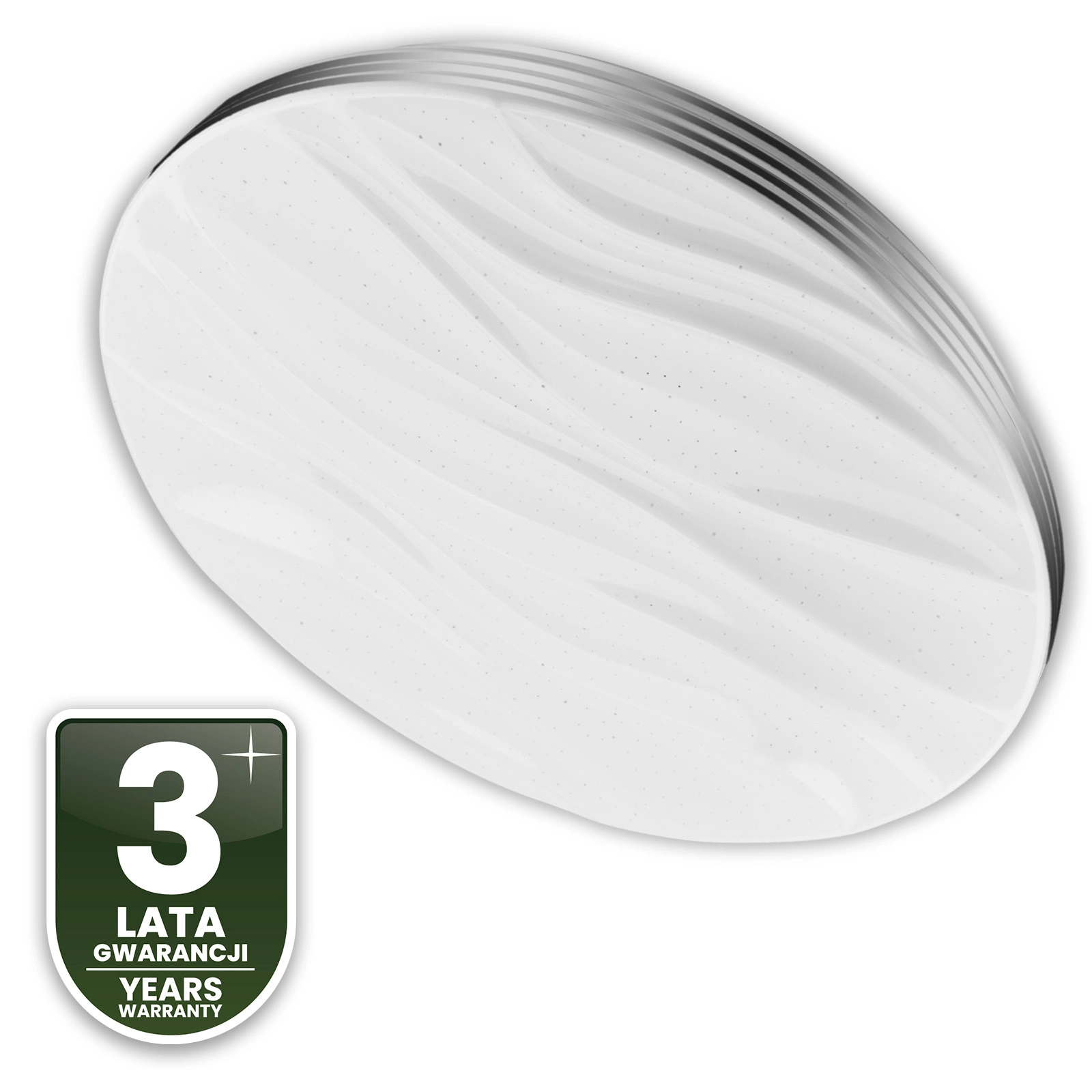 Der LED-Plafond mit einem Durchmesser von 50 cm ist eine moderne Beleuchtungslösung, die ein attraktives Design mit hoher Energieeffizienz verbindet. Die runde Form und der milchige Schirm sorgen für eine gleichmäßige Lichtverteilung, was sich positiv auf den Nutzungskomfort und die Ästhetik des Innenraums auswirkt. Dank des weichen, milchigen Schirms schafft die Lampe eine angenehme Atmosphäre, ideal für Schlafzimmer, Wohnzimmer oder andere Wohnräume.