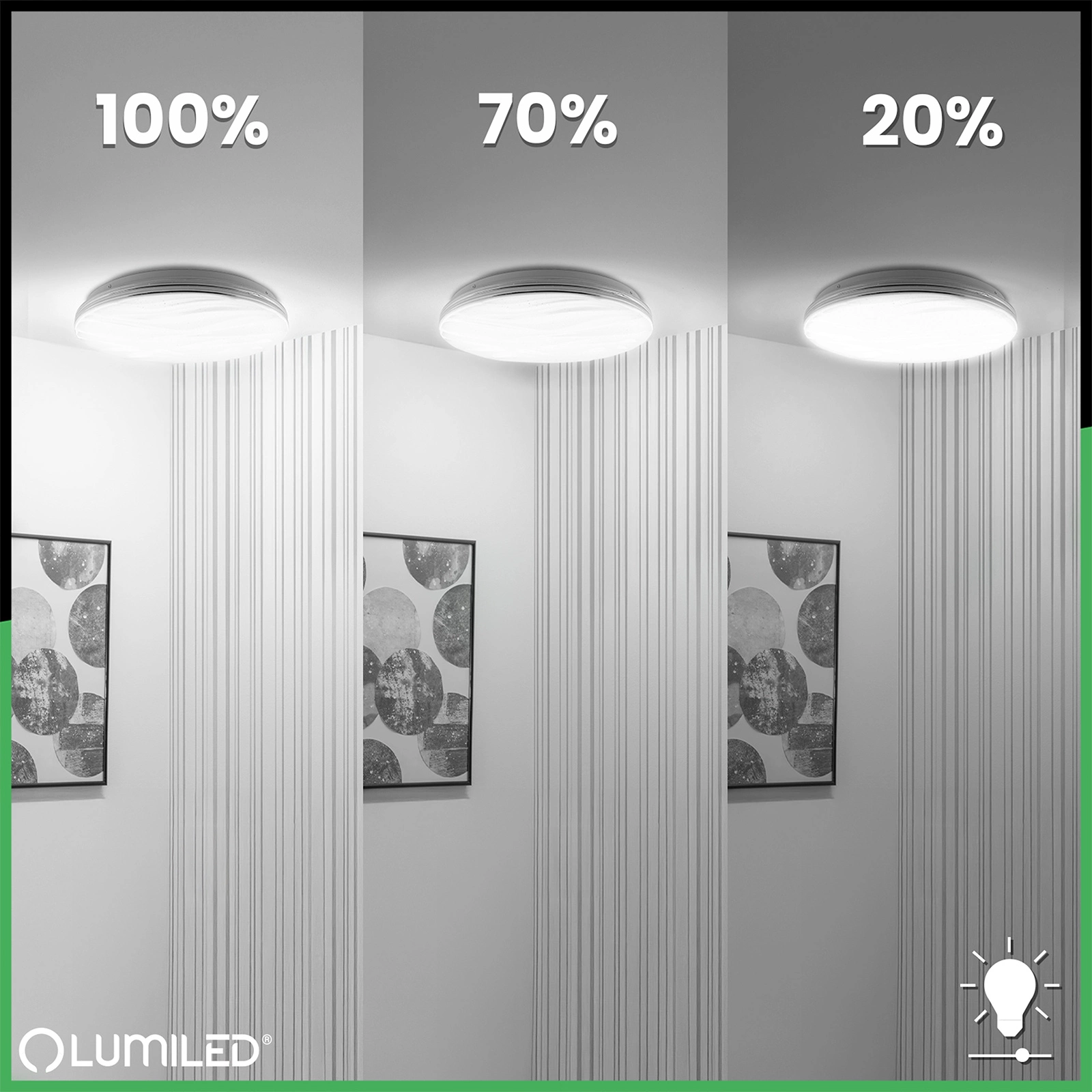 Der 72W LED-Plafond VIRTUS2 der renommierten und angesehenen Beleuchtungsmarke Lumiled verbindet hochwertige Verarbeitung mit Energieeffizienz und moderner Technik. Dank der Farbwechselfunktion (CCT) können Sie den Farbton des Lichts frei einstellen - von kühl bis warm - und so perfekt an Ihre Vorlieben anpassen. Sie erzeugt ein visuell angenehmes Licht mit einem Lichtstrom von 6480lm, das perfekt für jeden Raum in Ihrem Zuhause ist.