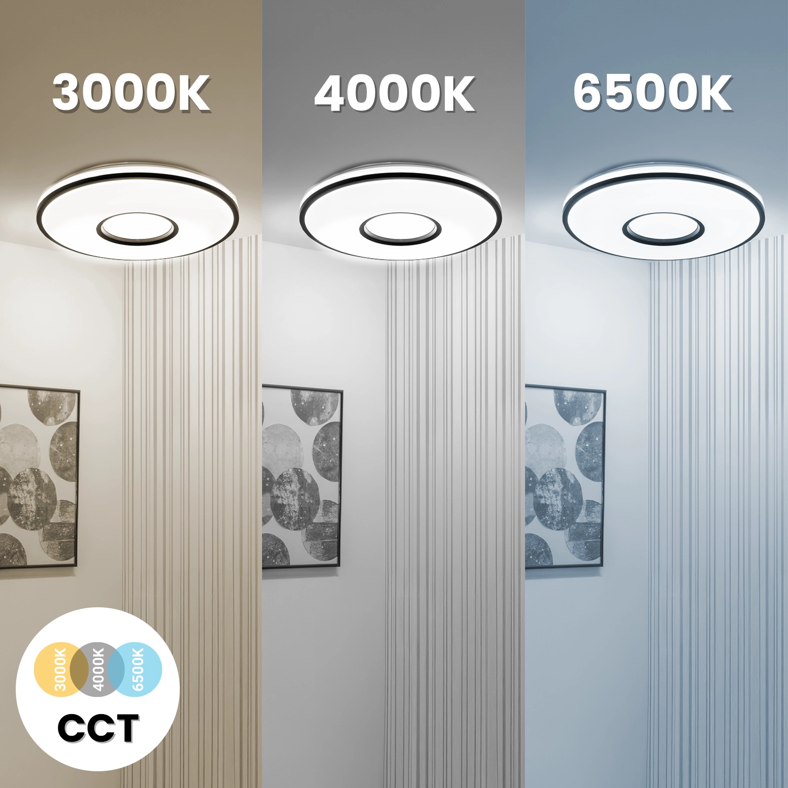 Die Deckenleuchte mit modernem, minimalistischem Design zeichnet sich durch ihre einfache Bedienung und hohe Funktionalität aus. Mit der mitgelieferten Fernbedienung lässt sich die Lichtfarbe bequem von warm über neutral bis kühl einstellen und die Helligkeit präzise regulieren. Der milchige Lampenschirm sorgt für eine angenehme Lichtstreuung, die eine gemütliche Atmosphäre schafft. Sie eignet sich ideal als Hauptbeleuchtungslösung für kleinere Innenräume, in denen Funktionalität und Ästhetik wichtig sind.