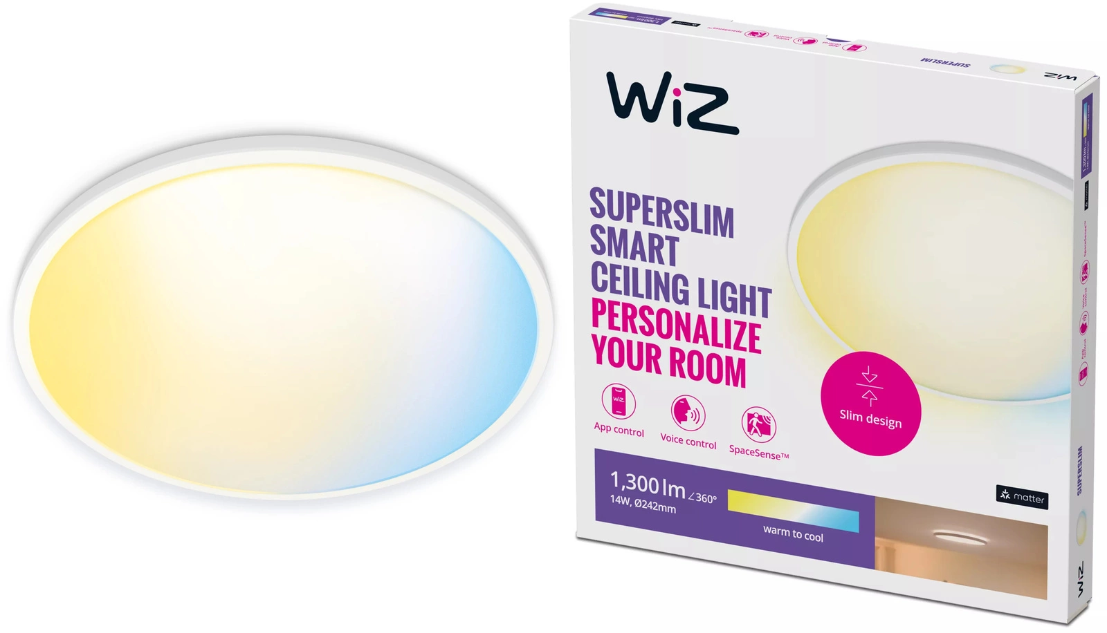 Entdecken Sie eine neue Dimension der Beleuchtung mit der Superslim WiZ smart LED Plafond. Mit einem Durchmesser von 24,2 cm kombiniert dieser stilvolle weiße Plafond modernes Design mit fortschrittlicher Technologie, um Ihnen täglich Komfort und Funktionalität zu bieten. Mit einer variablen Lichtfarbe von 2700-6500K passen Sie die Beleuchtung an jede Gelegenheit an und schaffen eine einzigartige Atmosphäre in Ihrem Wohnzimmer, Büro oder Schlafzimmer. Unsere intelligente Beleuchtung lässt sich mit der WiZ Connected-App über WiFi, Bluetooth und das Matter-Protokoll steuern und ist somit mit anderen modernen intelligenten Geräten kompatibel.