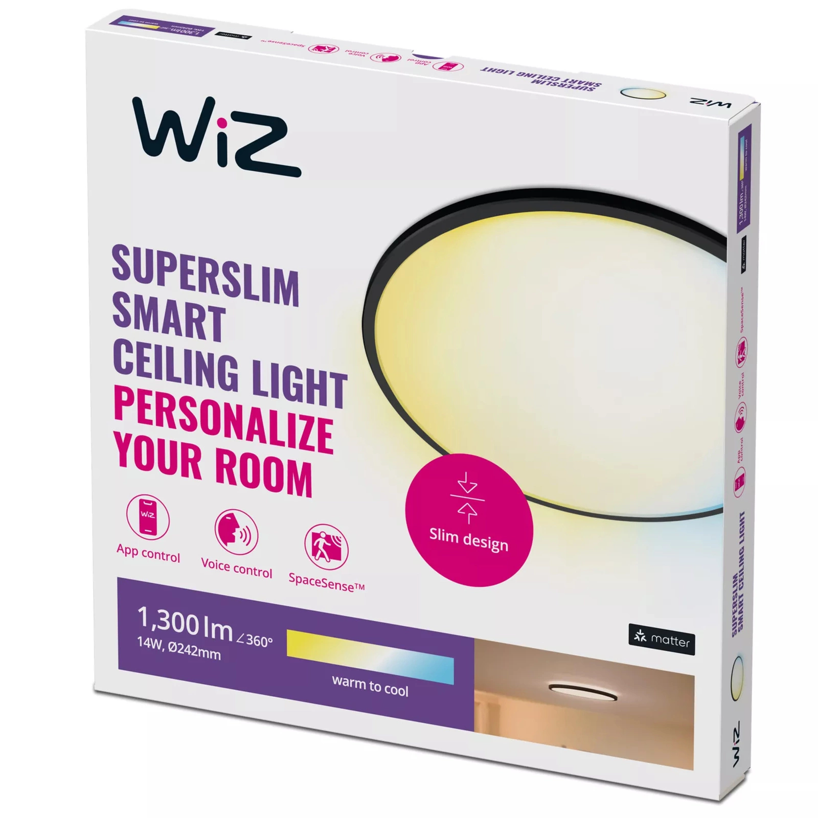 Leuchten, die Bewegungen erkennen und sich automatisch einschalten - das ist SpaceSense™! Diese einzigartige Technologie erkennt jede Ihrer Bewegungen, sodass Ihre Leuchten genau wissen, wann Sie sie brauchen! Ein WiZ-Produkt, Wi-Fi und unsere App sind alles, was Sie brauchen, um SpaceSense™ zu Hause zu nutzen. Die Installation ist einfach und benutzerfreundlich, und die Bewegungserkennung erfolgt automatisch - die Leuchten schalten sich selbst aus und ein, wenn Sie durch den Raum gehen.