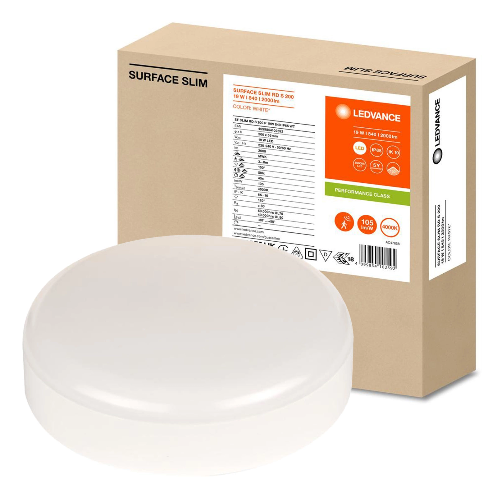 Plafond LED-Deckenleuchte 19W 2000lm 4000K Neutral mit Dämmerung Bewegungssensor Aufputz Weiß 20cm Oberfläche Ledvance