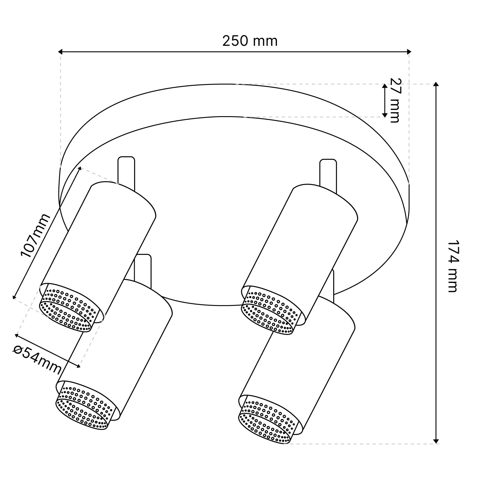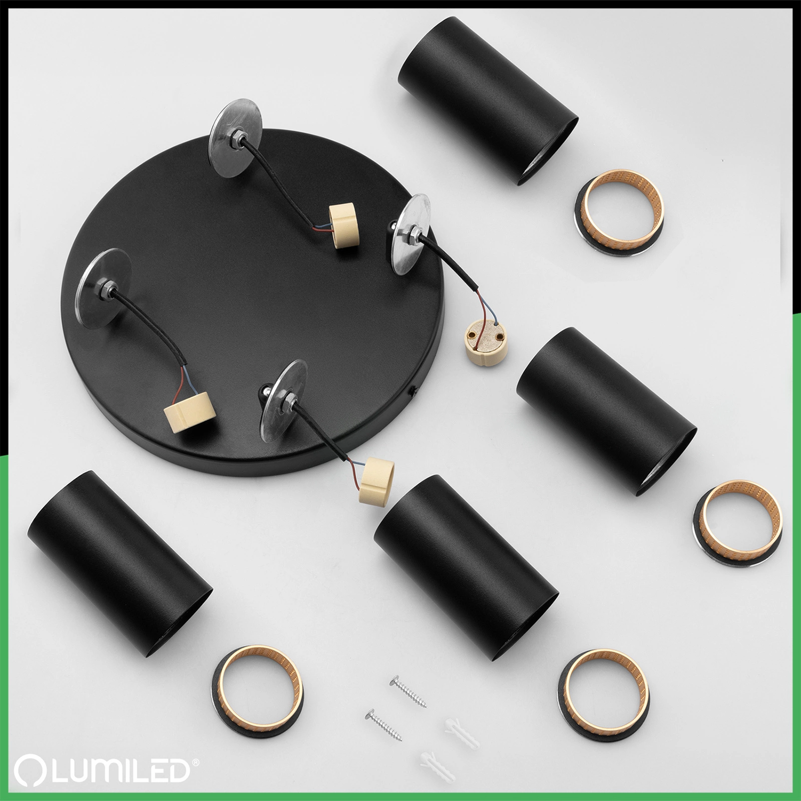 - 4x GU10-Fassungen zur Glühbirnenmontage