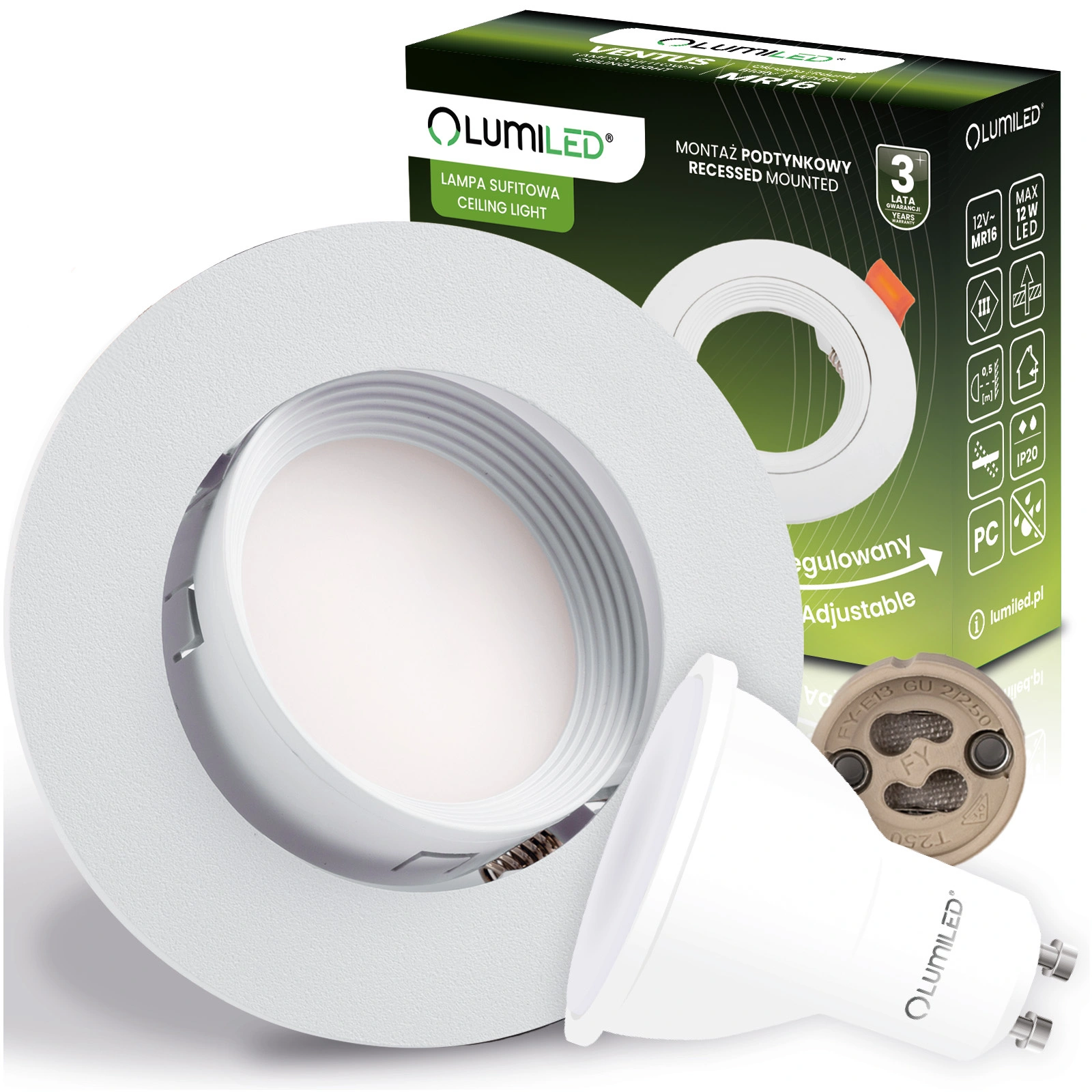 Set Halogen-Einbauleuchte VENTUS Weiß Rund + LED-Lampe GU10 6W Warm 120° Lumiled + Fassung