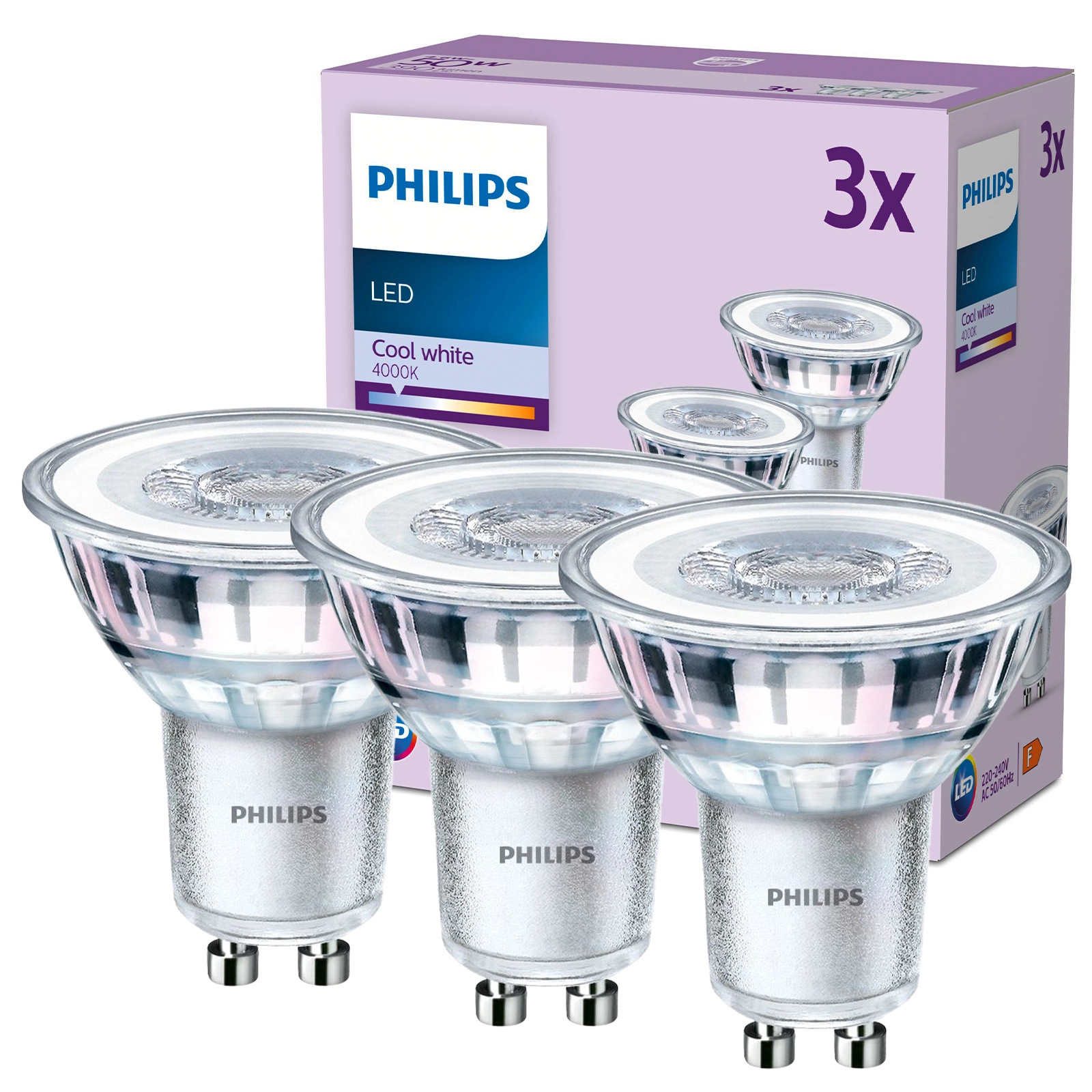 Die robuste Konstruktion aus **Glas** und eine Lebensdauer von **15.000 Stunden** garantieren eine lange und zuverlässige Nutzung. Die Glühbirne hat einen **GU10-Schaft** und funktioniert mit der Standard-Netzspannung **220-240V**. Sie sparen noch mehr, denn diese Glühbirnen werden in einem Set von **3 Stück** verkauft und haben einen durchschnittlichen Energieverbrauch von nur **5 kWh**. Dank der **CE**- und **RoHS**-Zertifizierung und der **EyeComfort**-Funktion können Sie sicher sein, dass Sie eine umweltfreundliche und sichere Beleuchtung kaufen. Schließen Sie sich den zufriedenen Nutzern an und genießen Sie das hochwertige Licht von Philips mit einer zweijährigen Garantie und Zufriedenheitsgarantie!