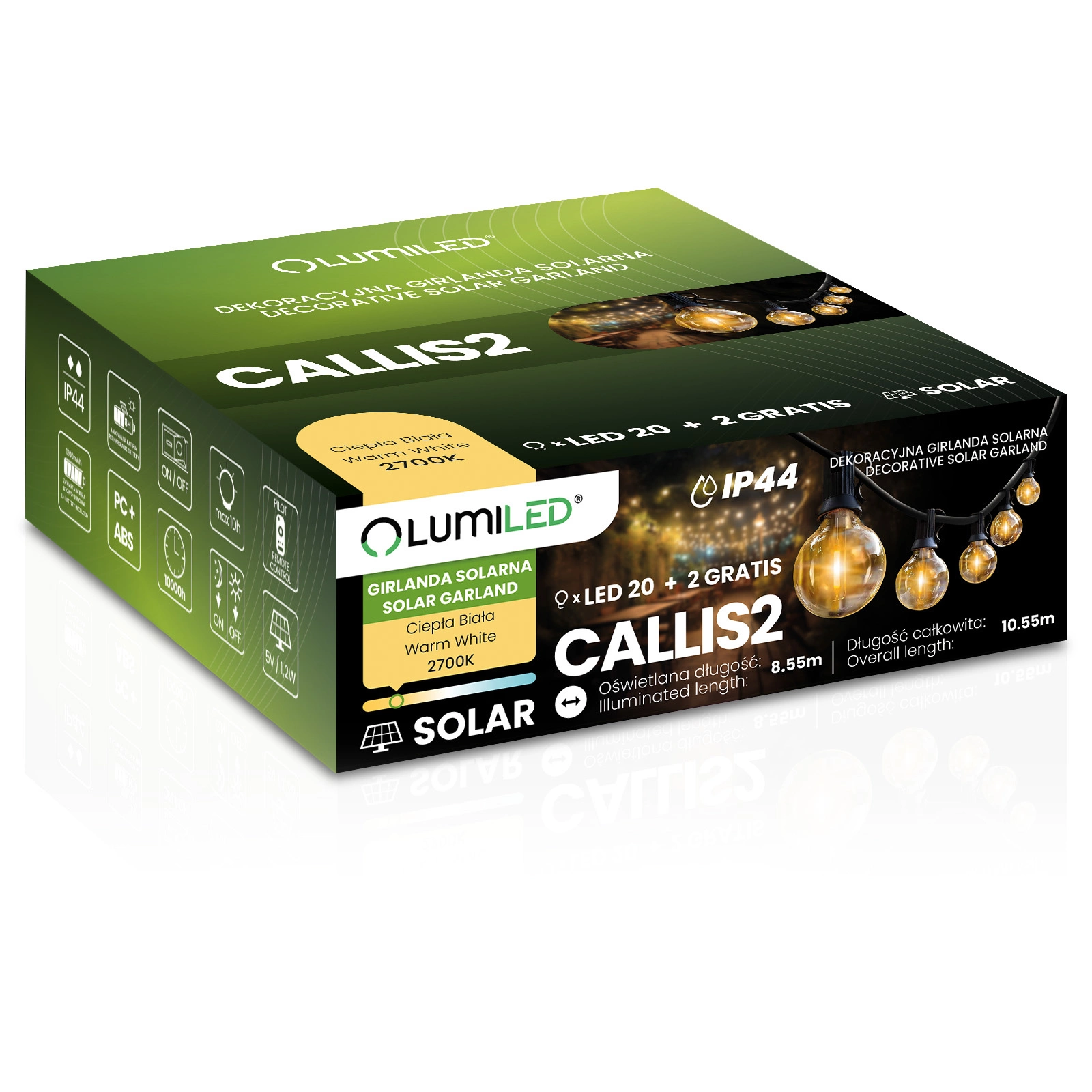 Callis2 Solargirlande marken Lumiled, von einem renommierten Beleuchtungshersteller, wurde entwickelt, um eine stimmungsvolle und gemütliche Atmosphäre zu schaffen. Sie passt perfekt in den Garten und kann dank ihres eleganten Designs sowohl als dekorative als auch als praktische Lichtquelle dienen, ideal für Pavillons, Terrassen oder Erholungsräume.