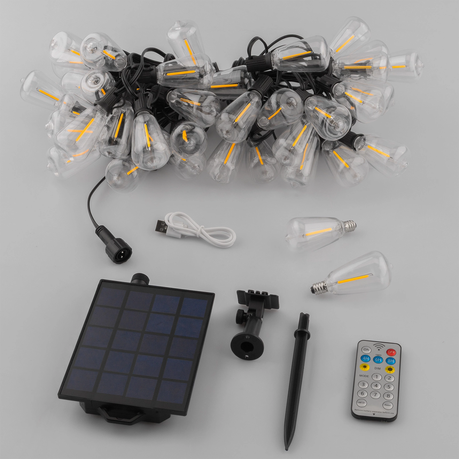 Solar Garten Girlande 40x LED Dekobirnen 14,5m 2700K Warm + PYRIS LUMILED Fernbedienung