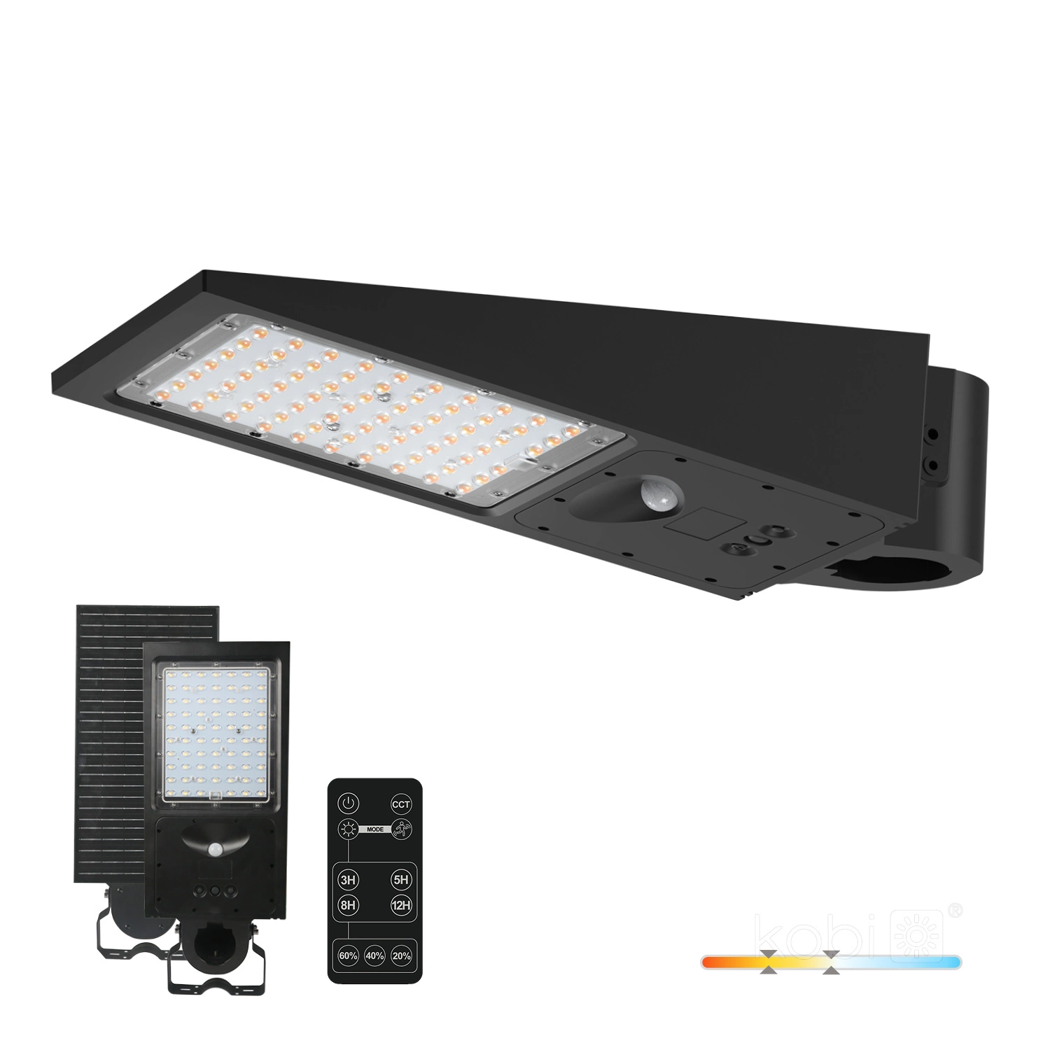 Solar LED Industriestraßenleuchte 30W 4800lm CCT mit Bewegungs- und Dämmerungssensor IP65 IK07 Schwarz Straße Kobi