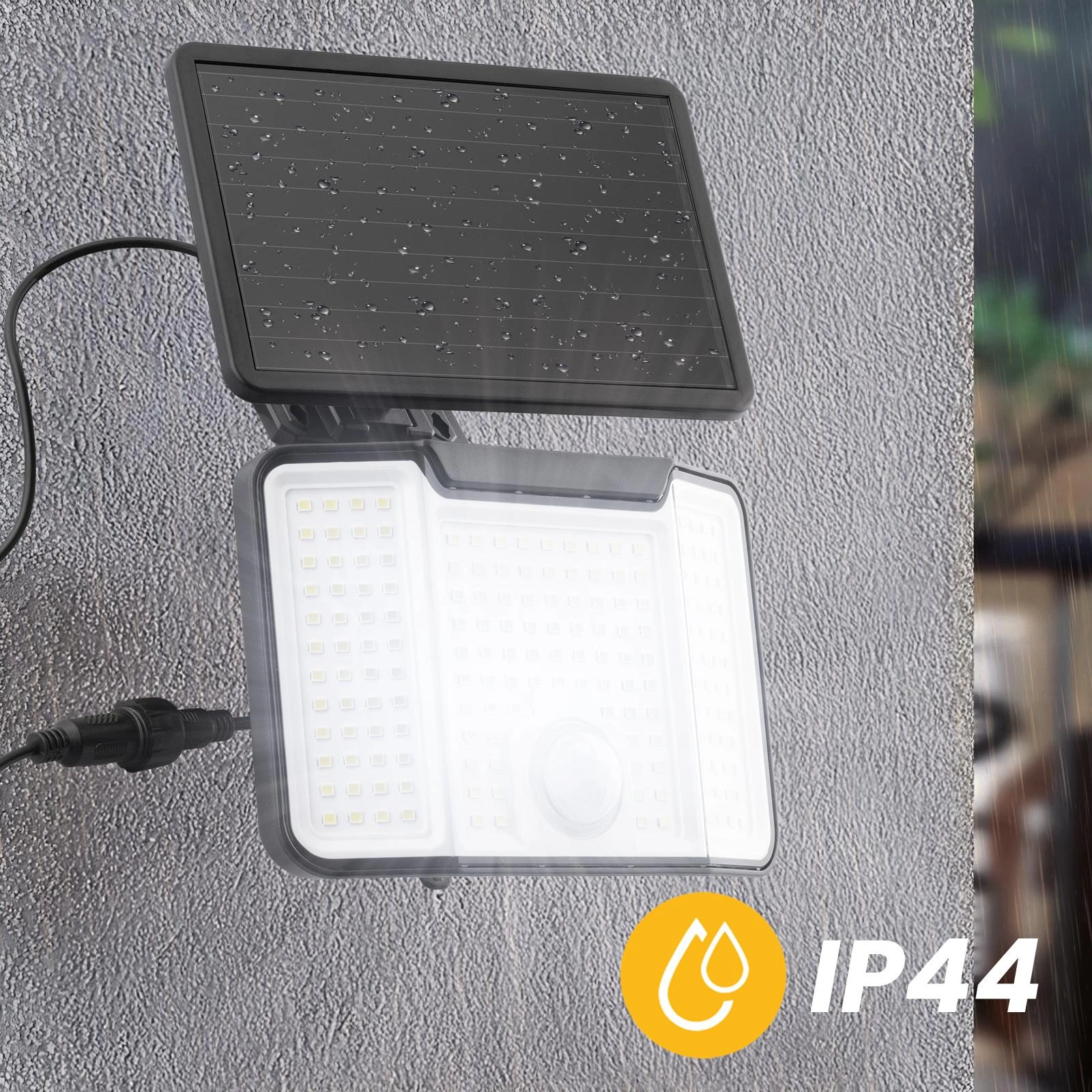 Die Solarlampe mit Schutzklasse IP44 ist die perfekte Lösung für alle, die eine zuverlässige und langlebige Außenbeleuchtung suchen. Das Produkt ist somit gegen Wassertropfen geschützt, die aus jedem Winkel fallen. Die robuste Konstruktion und der luftdichte Anschluss schützen vor Feuchtigkeit und Staub und gewährleisten einen zuverlässigen Betrieb bei schlechteren Wetterbedingungen.