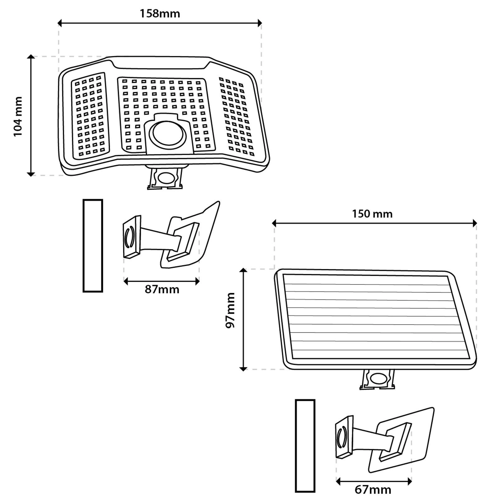 Die Solar-Halogenleuchte verfügt über einen integrierten Bewegungs- und Dämmerungssensor, der sie intelligent und energieeffizient macht. Der Dämmerungssensor schaltet das Licht nach Einbruch der Dunkelheit automatisch ein, so dass eine manuelle Steuerung nicht mehr erforderlich ist. Der Bewegungssensor schaltet die Lampe nur ein, wenn er eine Bewegung in der Nähe erkennt, was die Sicherheit erhöht und eine längere Betriebsdauer mit einer einzigen Ladung ermöglicht. Der Sensor hat einen Erfassungsbereich von bis zu 8 Metern, wodurch ein großer Bewegungserkennungsbereich und eine effektive Beleuchtung im richtigen Moment gewährleistet wird.