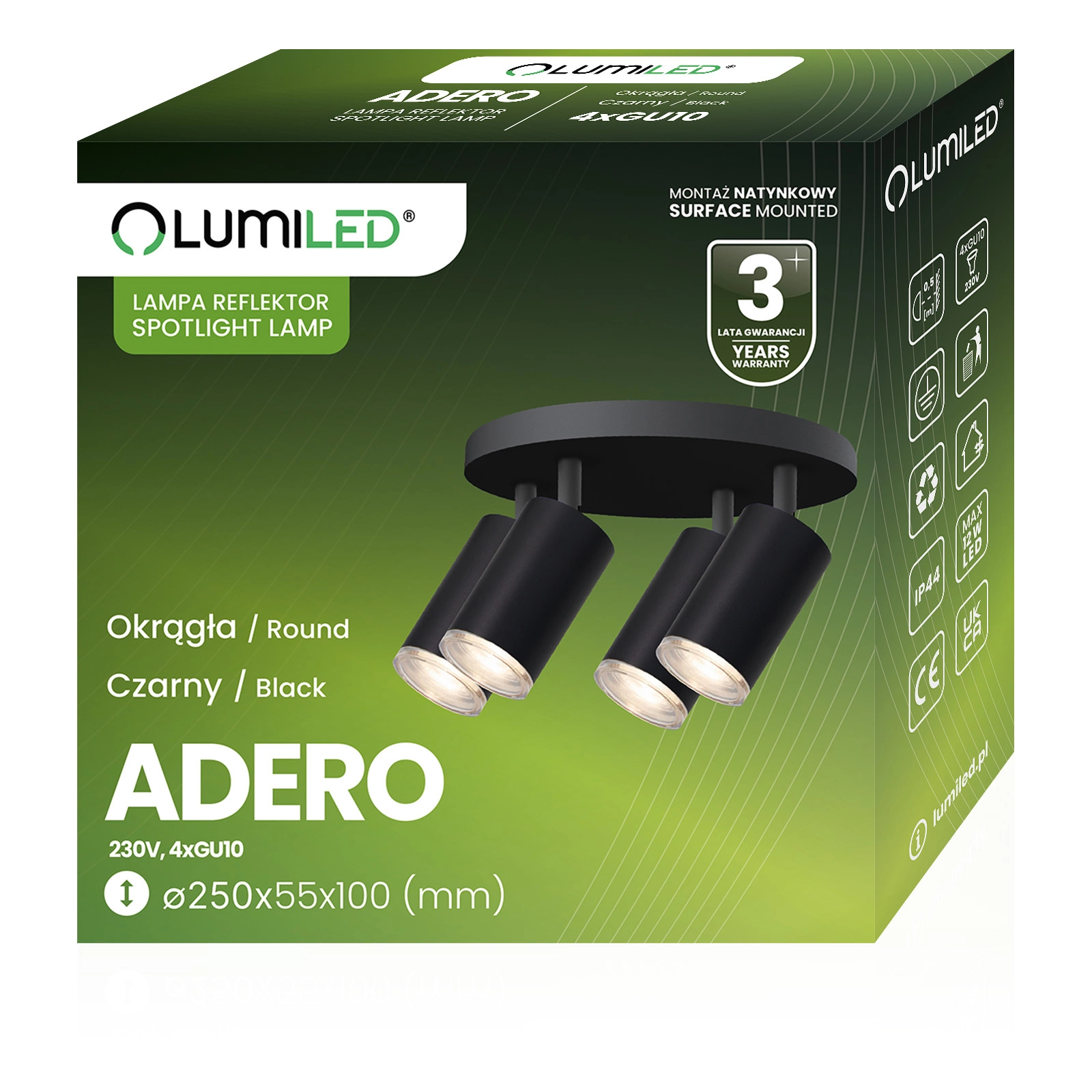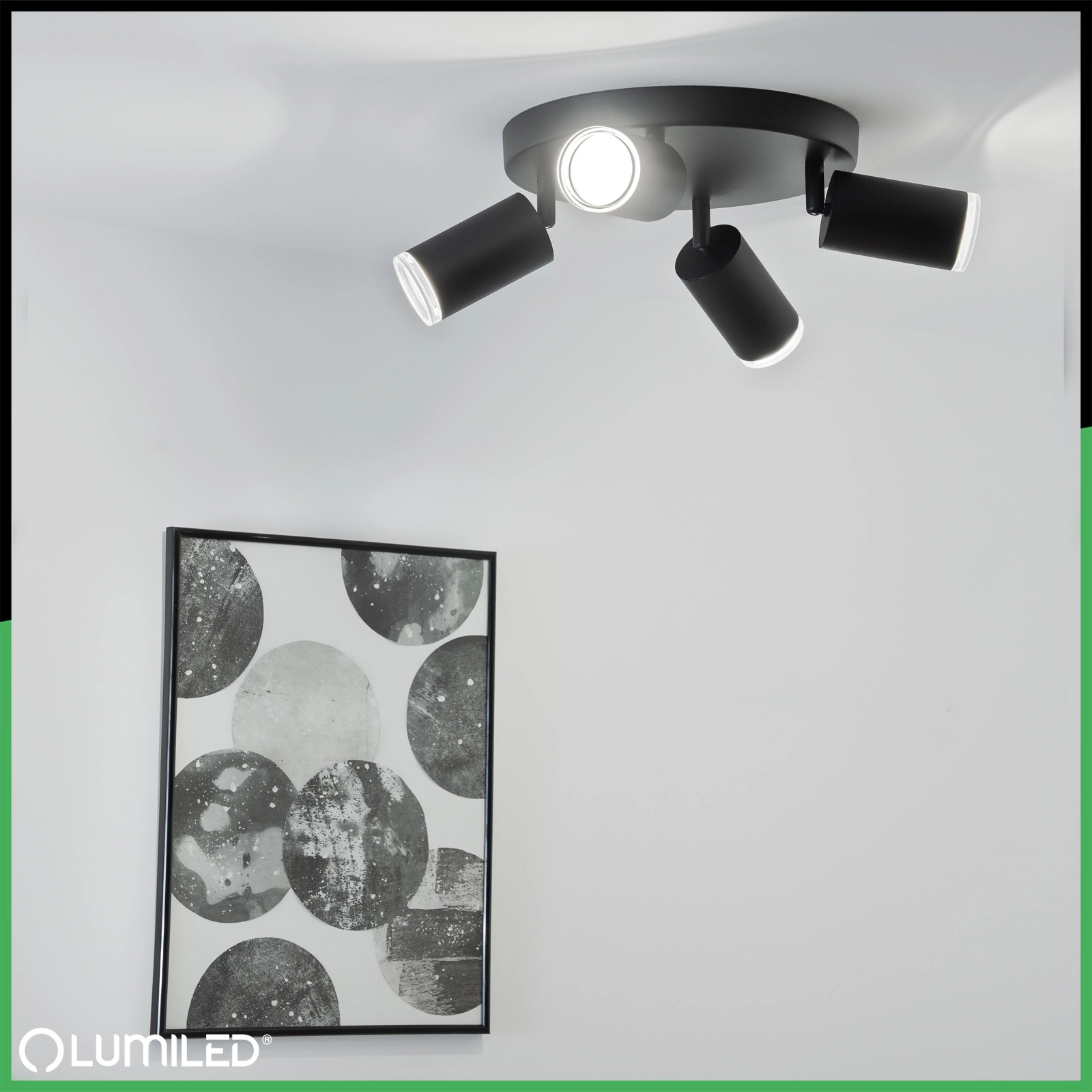 Die ADERO Serie 4 LED-Strahlerleuchte von Lumiled in Schwarz mit GU10-Fassung ist die perfekte Kombination aus modernem Design und effizienter Lichttechnik. Durch ihr minimalistisches Design passt sie in viele Umgebungen, sowohl in privaten als auch in gewerblichen Räumen. Er wurde aus hochwertigen Materialien hergestellt, die seine Langlebigkeit und sein elegantes Aussehen gewährleisten. Der schwarze Strahler aus strapazierfähigem Metall sieht nicht nur gut aus, sondern ist auch widerstandsfähig gegen mechanische Beschädigungen, was eine lange Nutzungsdauer gewährleistet. Das schlichte, aber stilvolle Design macht den Plafond zu einer perfekten Ergänzung für viele Einrichtungsstile, von modern bis klassisch. Der Vorteil der Leuchte besteht darin, dass sie mit jeder Glühbirne mit GU10-Gewinde und einer maximalen Wattleistung von 12 W ausgestattet werden kann.