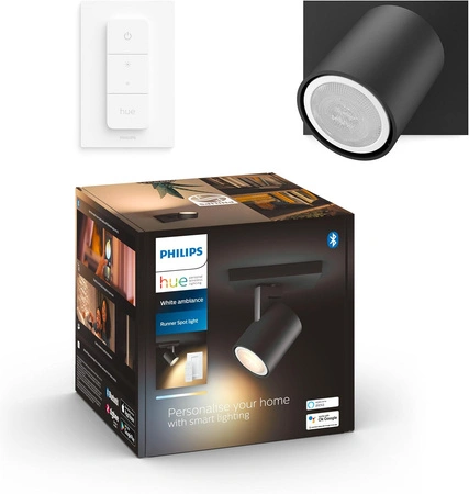 Spotlight HUE LED-Läufer in der Beleuchtungsindustrie bekannt und respektiert Philips. Moderne Wandleuchte mit einer LED-Lampe mit GU10-Sockel mit einer Leistung von 5W und einem sehr effizienten Lichtstrom - 350lm. Strahlt ein angenehmes und entspannendes licht mit einstellbarer Farbtemperatur von angenehm warm über neutral bis kalt, mit denen wir für jeden Anlass die richtige Stimmung schaffen können. Dank seines eleganten Gehäuses fügt er sich perfekt in die Wohnungseinrichtung ein. Lampe HUE LED-Läufer kann unabhängig oder als Teil eines intelligenten Beleuchtungssystems durch Verbindung mit der Hue Bridge funktionieren. Einfaches Ein- und Ausschalten der Beleuchtung, Dimmen, Aufhellen und Auswahl aus vier verschiedenen Lichtszenen.