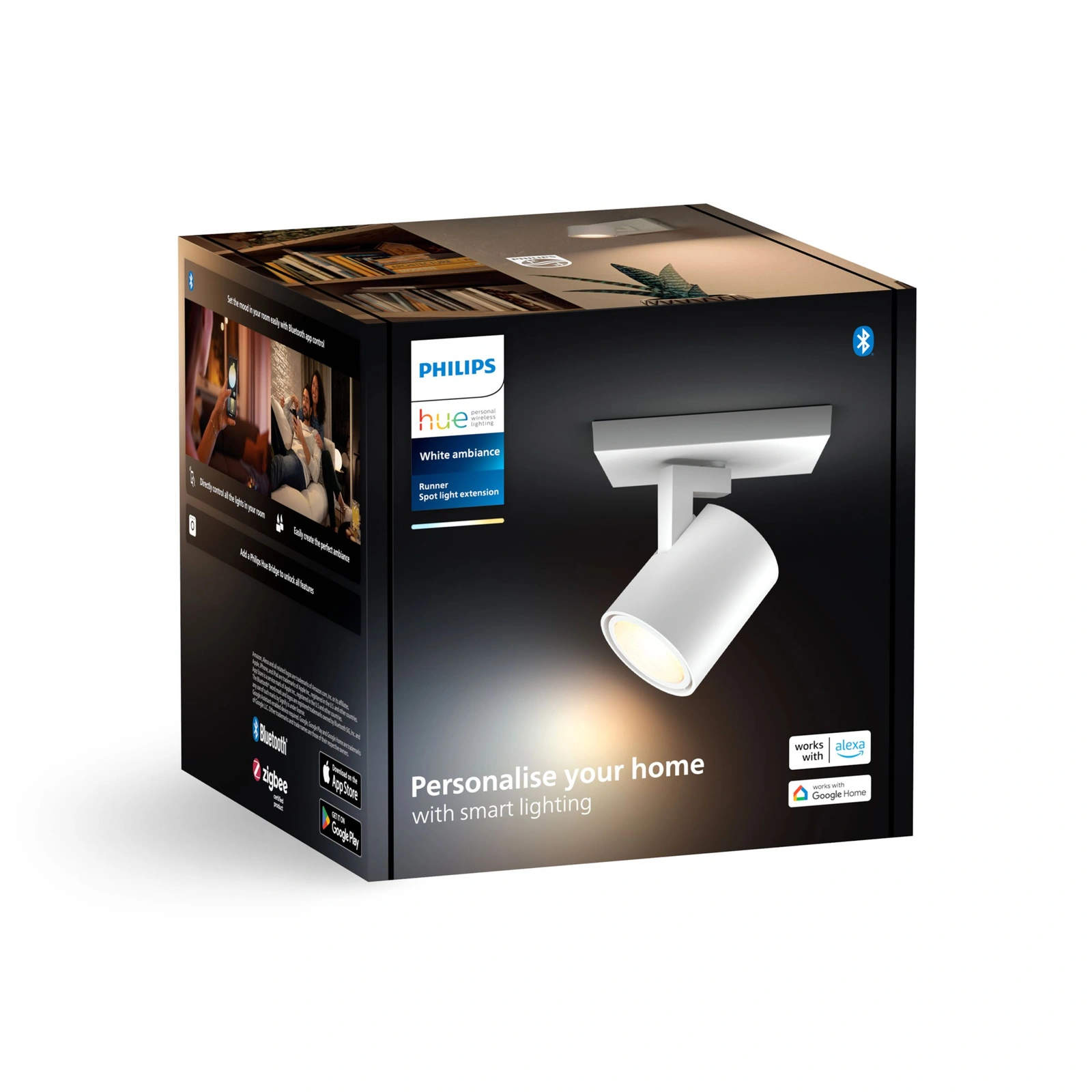 Spotlight HUE LED-Läufer in der Beleuchtungsindustrie bekannt und respektiert Philips. Moderne Wandleuchte ausgestattet mit einer LED-Lampe mit GU10-Sockel von 4,2W und einem sehr effizienten Lichtstrom von 400lm. Strahlt ein angenehmes und entspannendes licht mit einstellbarer Farbtemperatur von angenehm warm über neutral bis kalt, mit denen wir für jeden Anlass die richtige Stimmung schaffen können. Dank seines eleganten Gehäuses fügt er sich perfekt in die Wohnungseinrichtung ein. Lampe HUE LED-Läufer kann unabhängig oder als Teil eines intelligenten Beleuchtungssystems durch Verbindung mit der Hue Bridge funktionieren. Einfaches Ein- und Ausschalten der Beleuchtung, Dimmen, Aufhellen und Auswahl aus vier verschiedenen Lichtszenen.