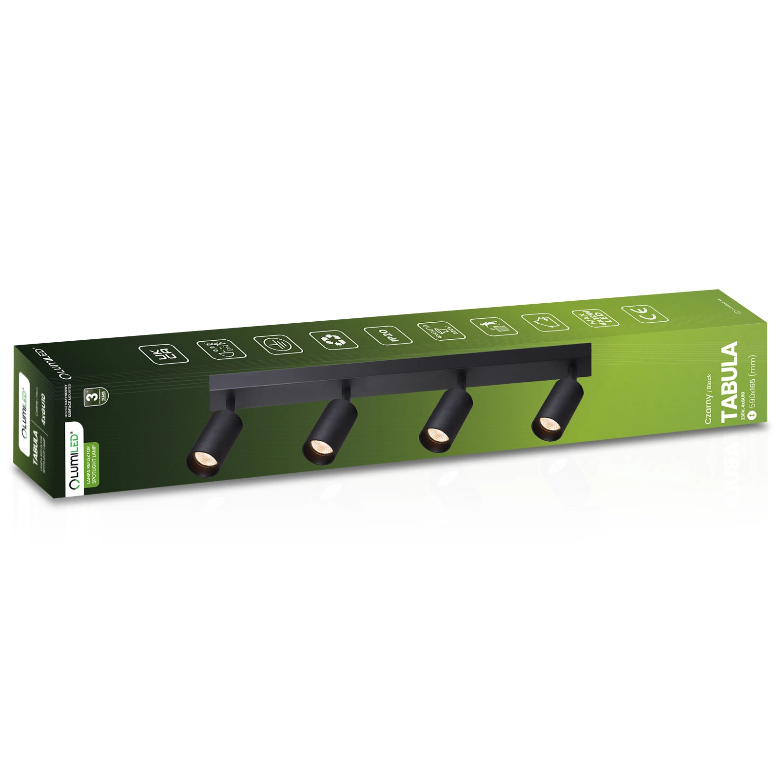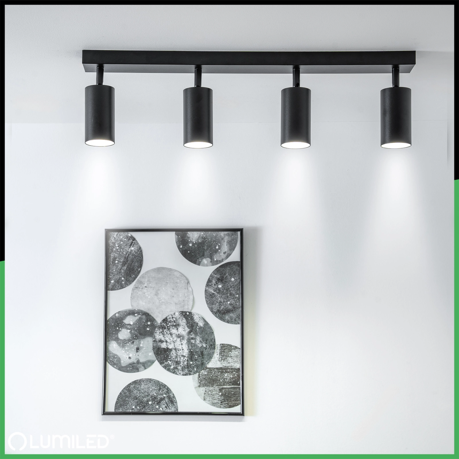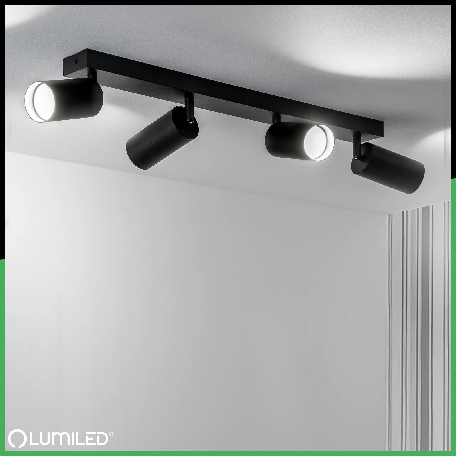 Die röhrenförmige Deckenleuchte mit modernem und minimalistischem Design ist die perfekte Lösung für jede Art von Einrichtung. Der schwarze Reflektor ist mit vier Fassungen für GU10-Glühbirnen ausgestattet, so dass sowohl herkömmliche als auch energiesparende LED-Lampen verwendet werden können. Der verstellbare Lichteinfallswinkel ermöglicht eine präzise Ausleuchtung ausgewählter Punkte im Raum. Das schlichte Design und die dezente matte Oberfläche machen die Leuchte zu einer perfekten Ergänzung für moderne, skandinavische oder Loft-Stil-Einrichtungen. Sie eignet sich perfekt zur Akzentuierung von Bildern, Regalen oder Dekorationsgegenständen und kann auch als größeres Beleuchtungssystem dienen.