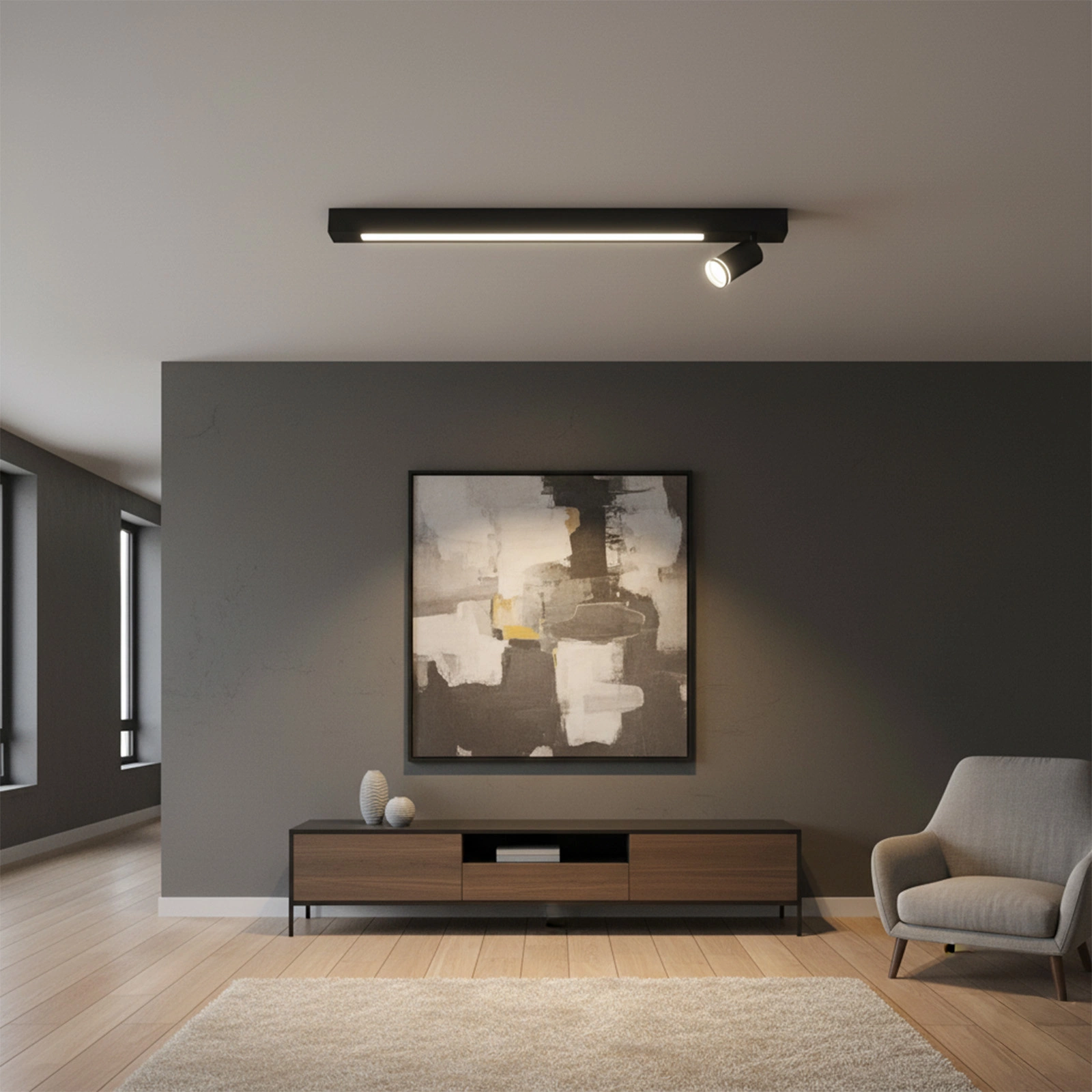 - Wohnzimmerbeleuchtung - ideal für die Schaffung einer gemütlichen, entspannenden Atmosphäre durch Anpassung der Lichtleistung.