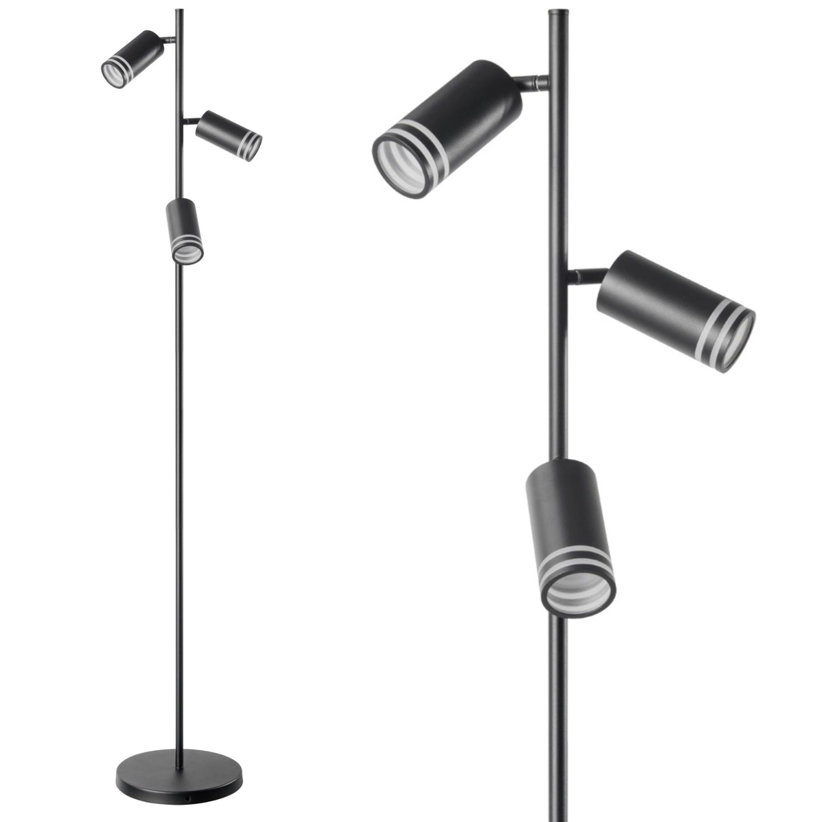 Die ROMA 3x GU10 Black Stehleuchte der renommierten Marke Sanico Goldlux ist eine perfekte Kombination aus modernem Design und Funktionalität. Diese elegante Leuchte aus hochwertigem Aluminium in Schwarz wird zu einer stilvollen Ergänzung für jedes Interieur. Ihr minimalistisches Design wird durch das Unauffällige - einen Acrylring zum Aufdrehen - ergänzt, der ihr eine subtile Eleganz verleiht. Die Leuchte ROMA fügt sich perfekt in die Gestaltung verschiedener Räume ein, wie z. B. Wohnzimmer, Esszimmer, Schlafzimmer, Büro oder Flur. Sie bietet bis zu drei Lichtpunkte mit der Möglichkeit, verschiedene austauschbare Leuchtmittel vom Typ GU10 zu verwenden.