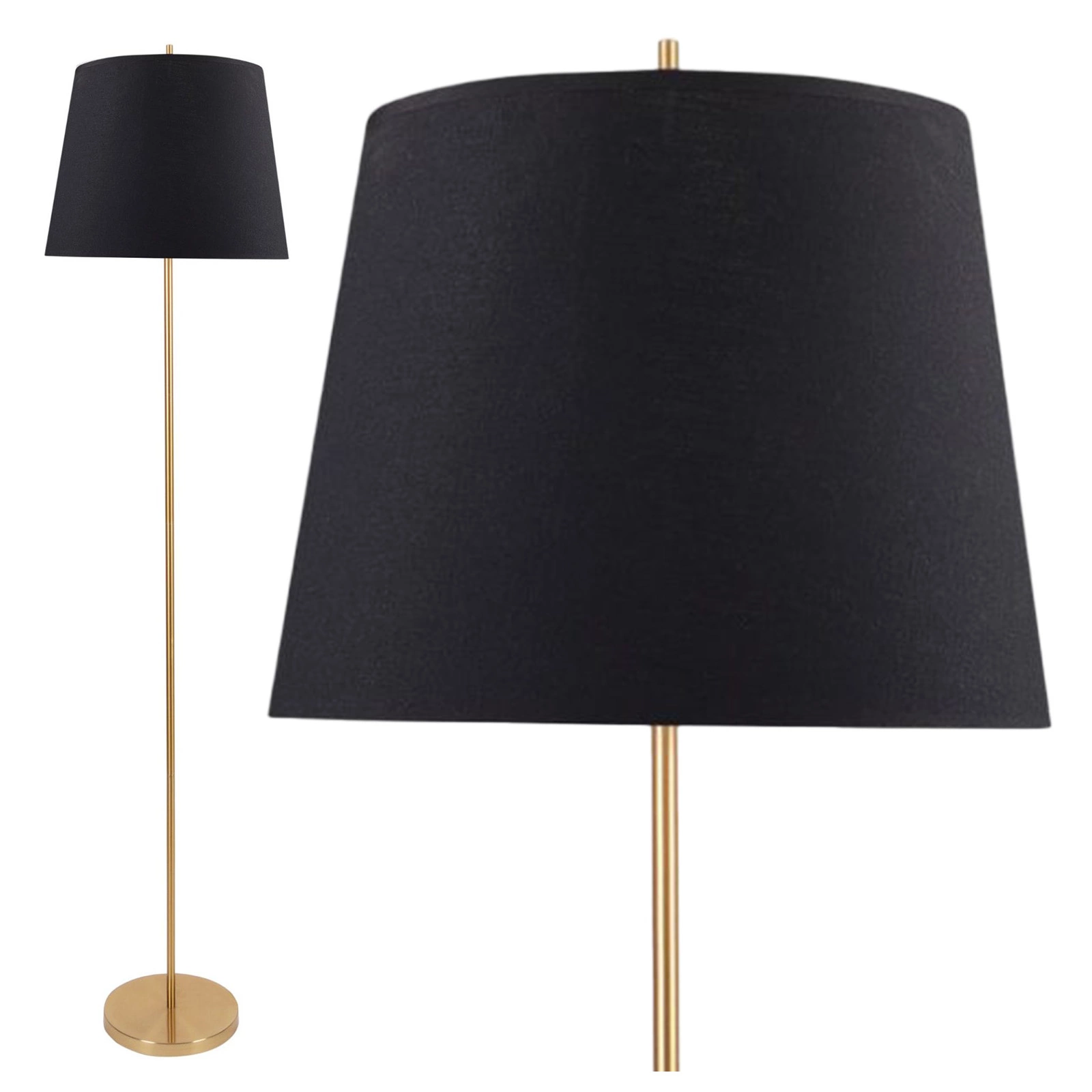 Mit der Stehleuchte ELENA aus der prestigeträchtigen Sanico Goldlux-Kollektion erreichen Sie die nächste Stufe der Eleganz in Ihrem Interieur. Die Quintessenz von Stil und Zweckmäßigkeit, diese schöne Lampe beeindruckt mit ihrem einzigartigen schwarz-goldenen Lampenschirm. Auf einem soliden Gestell mit goldener Oberfläche schafft die Leuchte eine Atmosphäre von Klasse und Luxus in Ihrem Zuhause und passt sowohl zu traditionellen als auch zu modernen Einrichtungen. Ideal für das Wohn-, Schlaf- oder Esszimmer, wo sie nicht nur Licht, sondern auch einen einzigartigen Stil bietet.