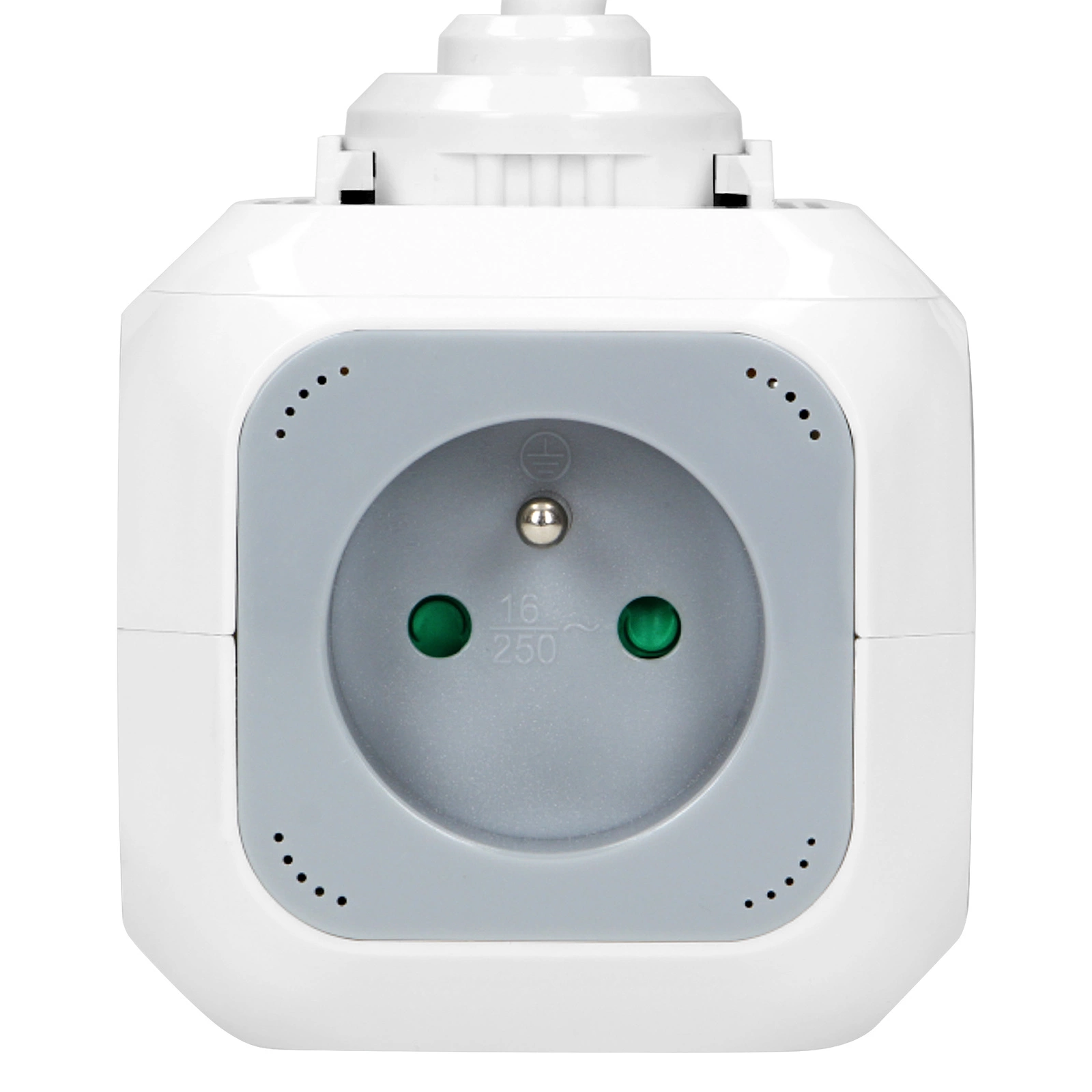 Verlängerungswürfel 2P+Z 4x Steckdose + 2x USB mit Erdungsschiene Kabel 1,4m 16A