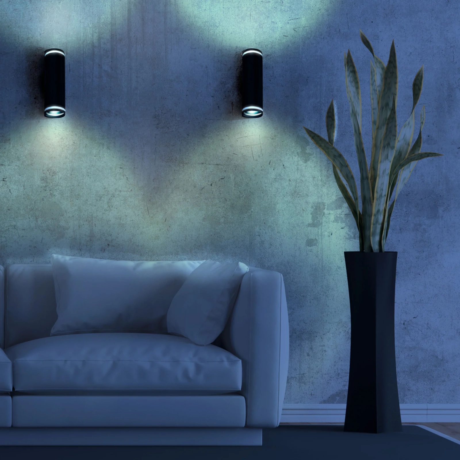 Entdecken Sie Eleganz und Modernität mit der Wandleuchte "Paris" der Marke Sanico Goldlux. Diese Wandleuchte aus robustem , schwarzem Aluminium verbindet Funktionalität mit einem Designer-Look und verleiht jedem Interieur Charme. Ausgestattet mit zwei austauschbaren GU10-Glühbirnen, die jeweils eine maximale Leistung von 10 W haben, bietet sie genau die richtige Beleuchtung, um die Atmosphäre in Ihrem Zuhause zu verbessern. Ein dezenter Acrylring unterstreicht die Ästhetik der Leuchte und setzt einen zarten dekorativen Akzent.