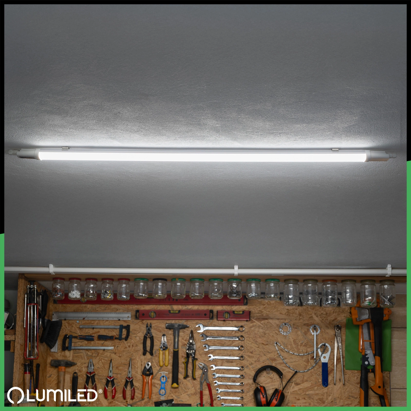 Die 36W RAY Lampe von Lumiled ist eine LED-Leuchte, die für maximale Haltbarkeit und Funktionalität entwickelt wurde. Mit ihrer versiegelten IP65-Konstruktion eignet sie sich sowohl für den Einsatz in privaten Garagen als auch in industriellen Umgebungen. Die Lichtfarbe von 4000K sorgt für eine neutrale, angenehme Beleuchtung und die Fähigkeit, von beiden Seiten mit Strom versorgt zu werden, macht es einfach, sie in Lichtketten zu installieren - ohne Änderungen oder zusätzliche Komponenten.