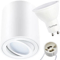 Halogen-Aufbauleuchte, Aufbauspot 84mm Runde Tube Weiß AMAT-M+LED GU10 6W warm LUMILED