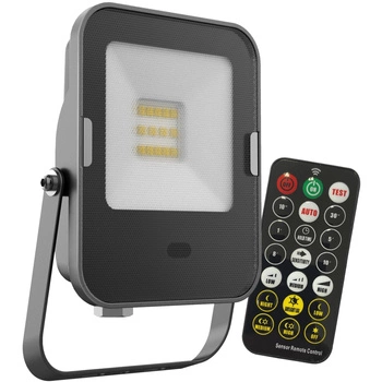 AusverkauftLED-Flutlicht 30W 2400lm 6500K IP65 Schwarz mit Bewegungs- und Dämmerungssensor + Fernsteuerung KOBI MHNC