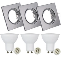 Set aus 3x beweglichen Halogenlampen GOLDLUX (Polux), quadratisch, Nickel + GU10 3,5W LED Lampen