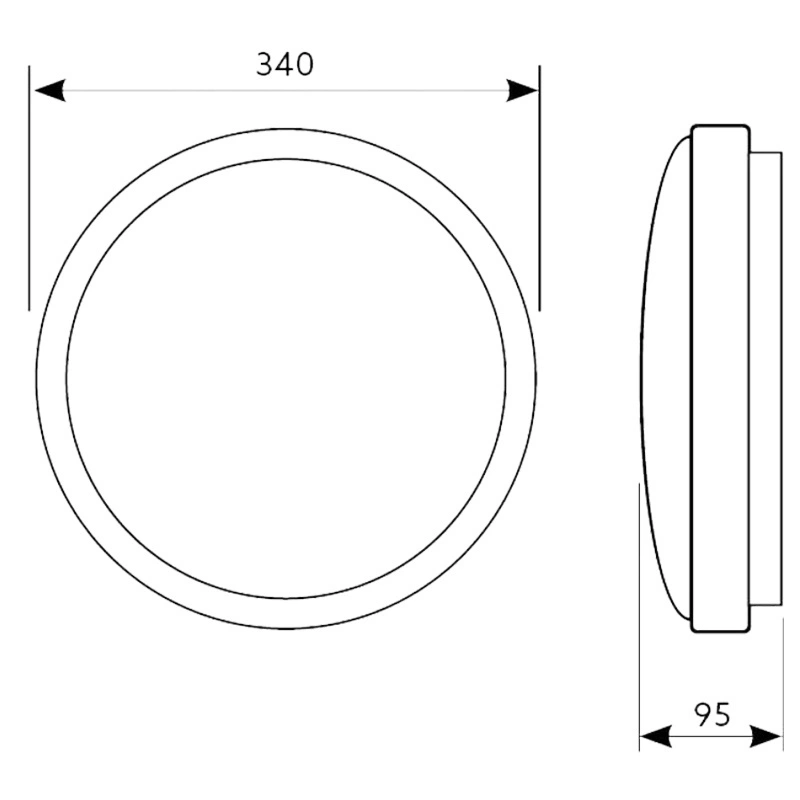 Die Leuchte hat einen Durchmesser von 33 cm und einen Lichtverteilungswinkel von 140°.
