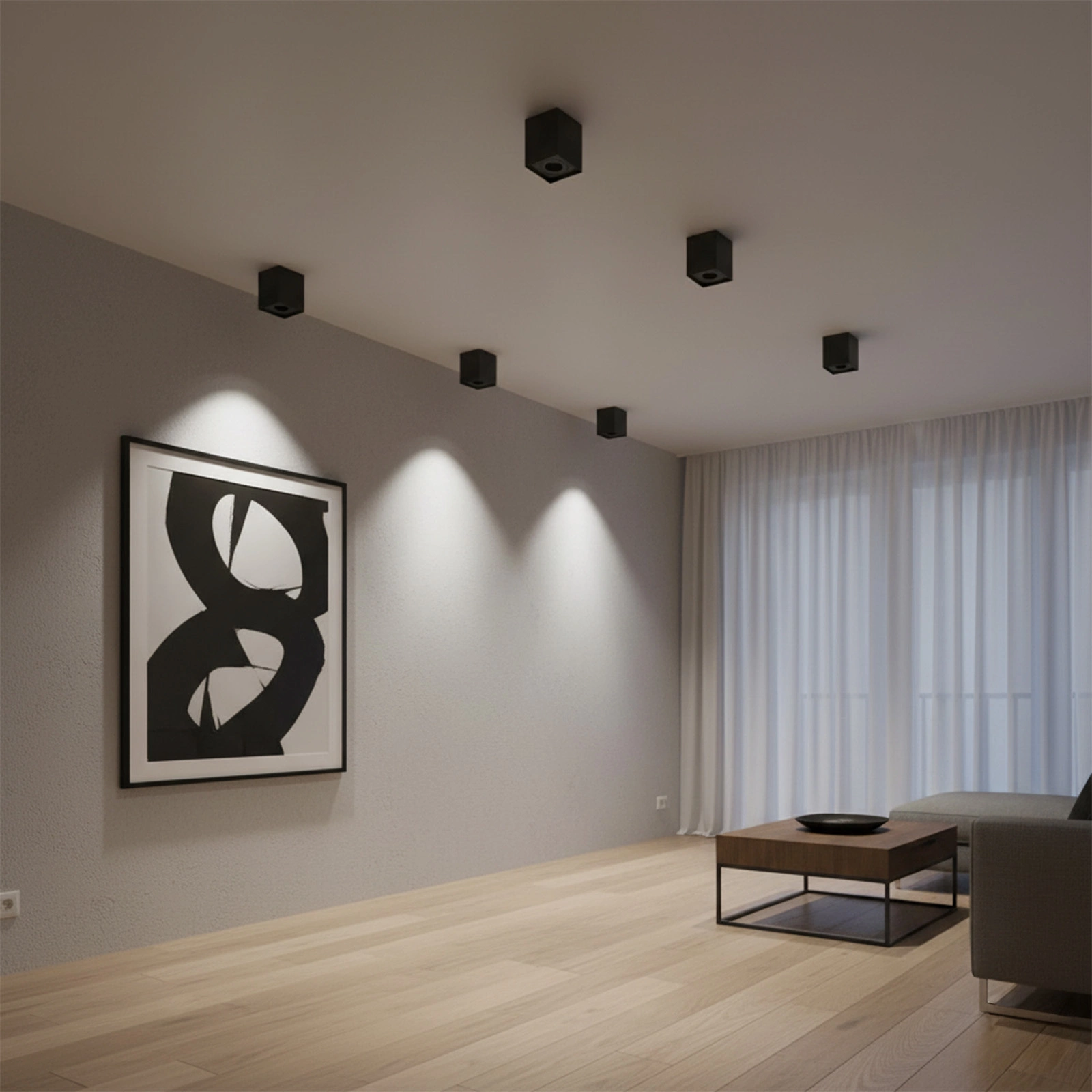 Die Deckenaufbauleuchte Polux aus der Hadar- Kollektion ist eine moderne Metallleuchte , die sich dank ihrer minimalistischen Optik perfekt in zeitgenössische Innenarchitekturstandards einfügt. Sie ist für Leuchtmittel mit GU10- Sockel gedacht . Dadurch können Sie ganz einfach eine Glühbirne mit der für Sie passenden Leistung und Lichtfarbe auswählen.