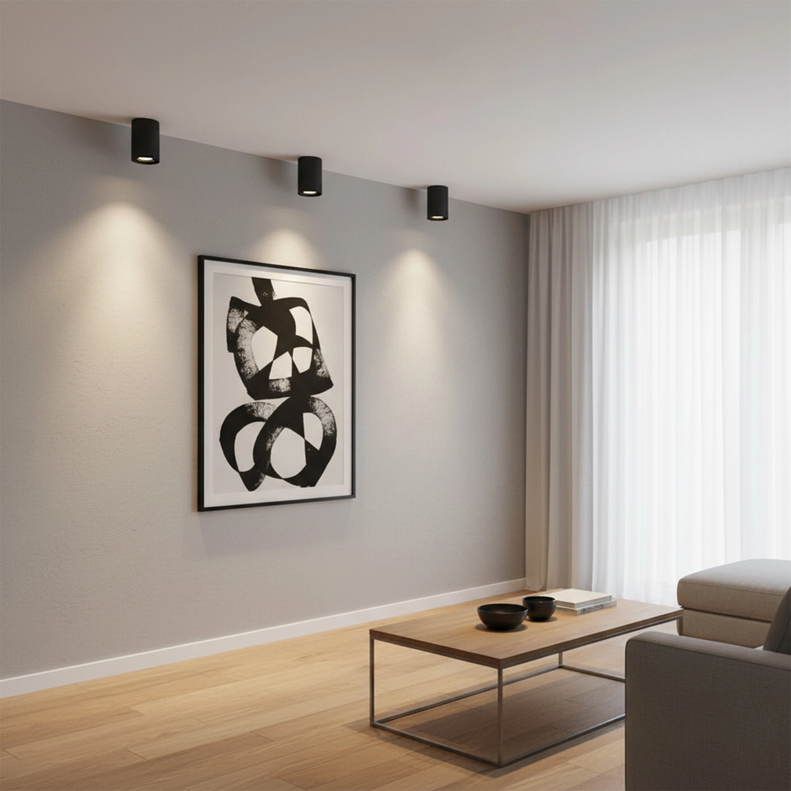 Die Deckenanbauleuchte Polux aus der HADAR- Kollektion, Modell R1 , ist eine moderne Metallleuchte , die sich dank ihrer minimalistischen Optik perfekt in zeitgenössische Innenarchitekturstandards einfügt. Sie ist für Leuchtmittel mit GU10- Sockel gedacht . Dadurch können Sie ganz einfach eine Glühbirne mit der für Sie passenden Leistung und Lichtfarbe auswählen.
