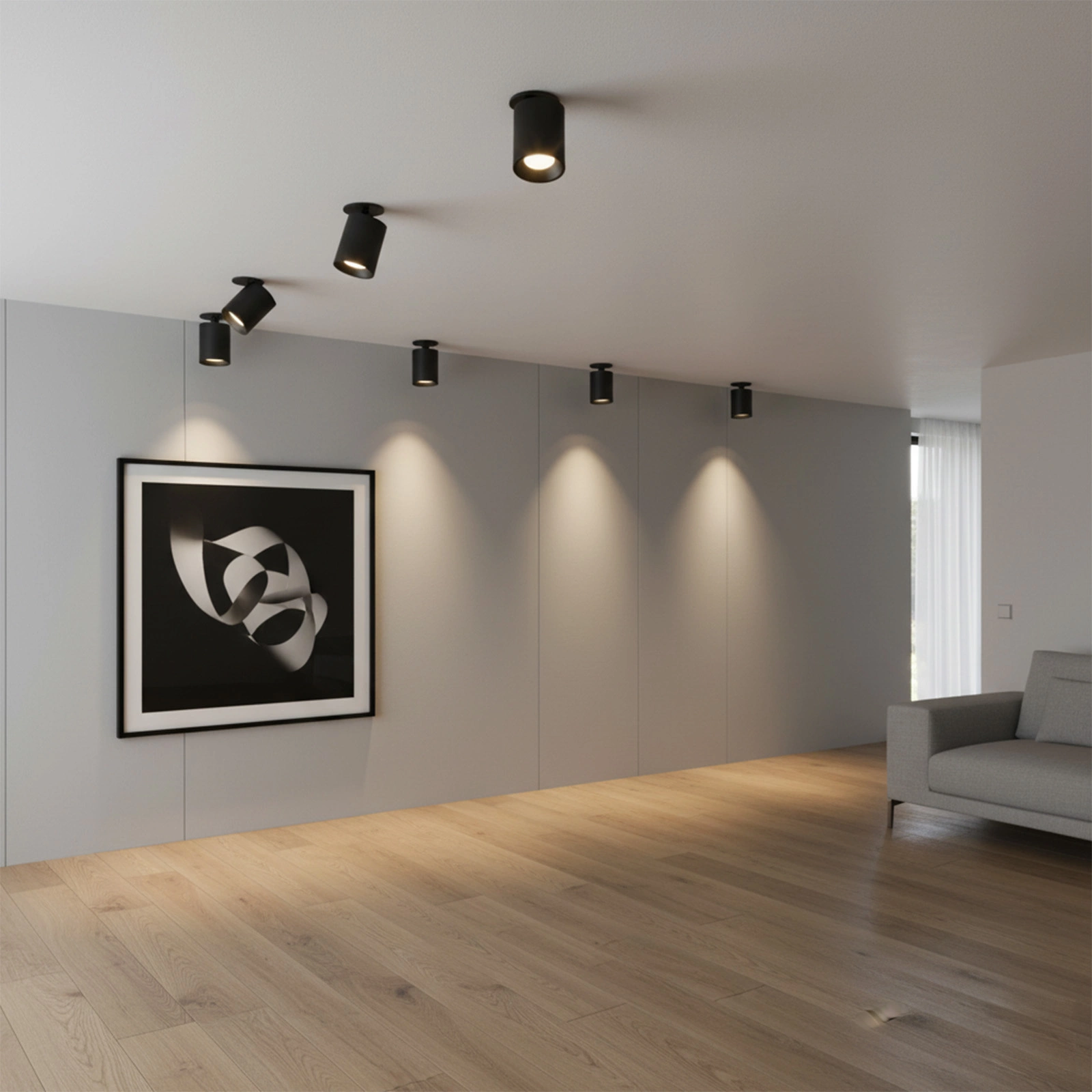 Deckeneinbauleuchte HARON GU10 Tuba Spot Moving Round Schwarz GOLDLUX