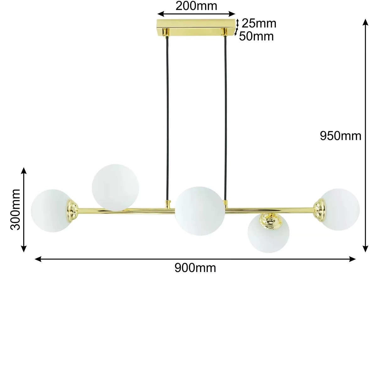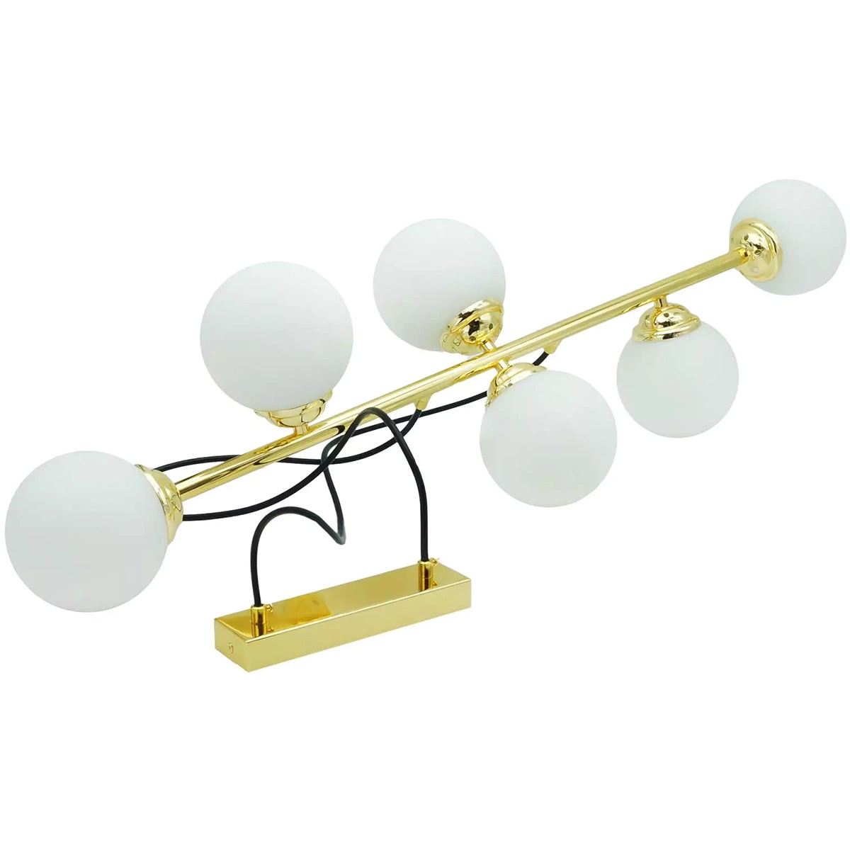 Die Lampe ist aus hochwertigen Materialien gefertigt. Es ist im klassischen Loft-Stil mit 6 Lichtpunkten gestaltet . Jede Lampe ist goldfarben und mit einem milchigen Glasschirm bedeckt. Es passt perfekt zu hellen und dunklen Wänden. Sein eleganter Stil eignet sich nicht nur für moderne , sondern auch für traditionelle, industrielle Innenräume . Es sorgt nicht nur für eine gute Beleuchtung im Raum, sondern dient auch als Dekoration. Ein wichtiger Vorteil dieser Lampe ist das beliebte E27-Gewinde (6x) mit max. elektrische Leistung 40W.