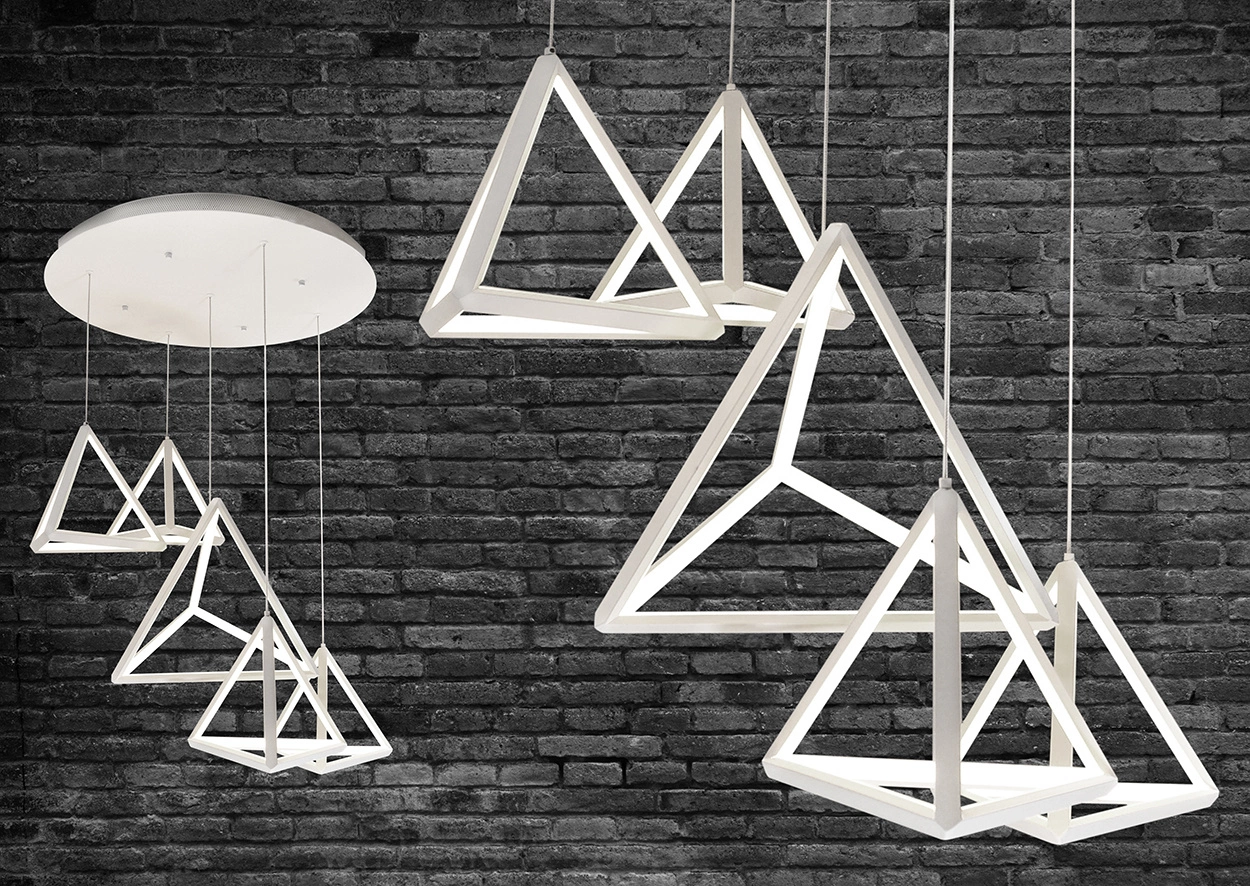 Polux LED-Dreiecke sind die neuesten Hängelampen mit modernem Look und integrierter LED-Lichtquelle. Sein einzigartiges Design begeistert und verändert das Erscheinungsbild unserer Häuser oder Wohnungen für immer. Die dreieckige Hängelampe zeichnet sich nicht nur durch hervorragende Verarbeitung und Schönheit aus, sondern auch durch Energieeffizienz und beste Lichtparameter. Die vorgestellte Hängelampe ist eine perfekte Beleuchtung für Wohnzimmer, Schlafzimmer und sogar ein Wohnzimmer.